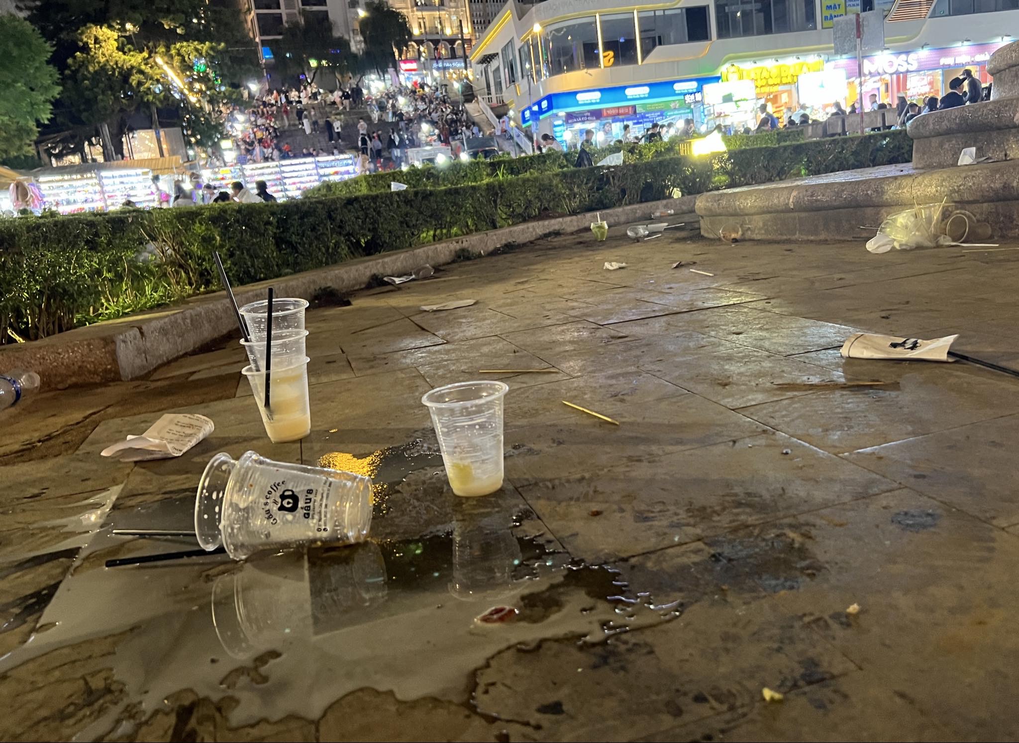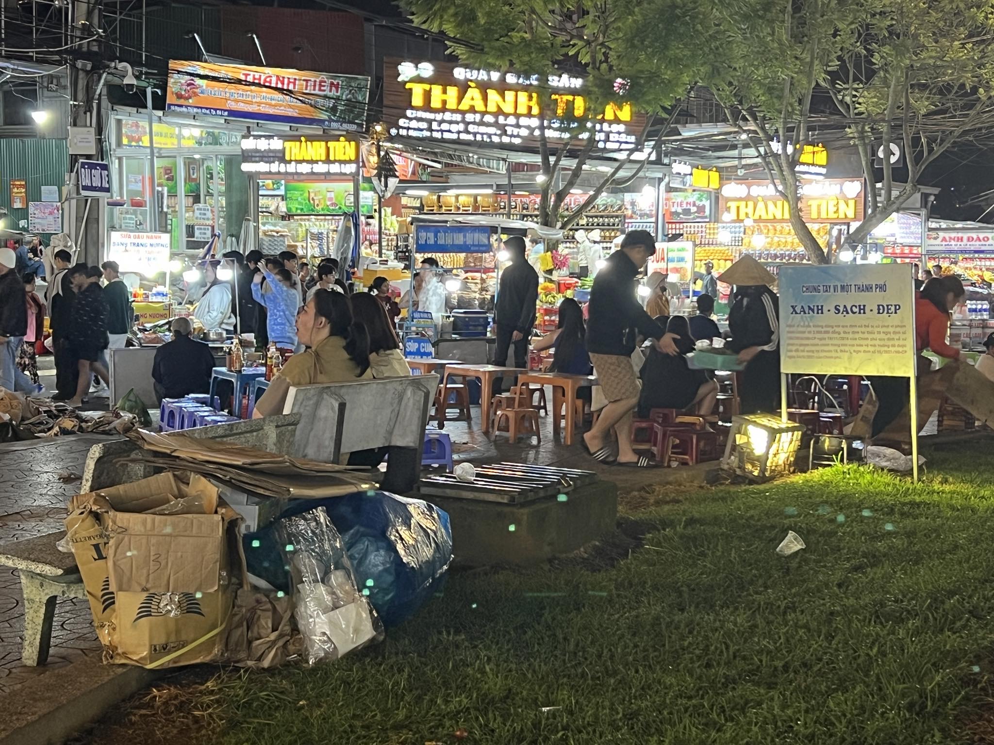 Mặc dù là đầu tuần nhưng khu phố đêm là quảng trường bên chợ Đà Lạt có hướng nhìn thẳng ra Hồ Xuân Hương vẫn tấp nập du khách. Nhưng có lẽ cảm giác đó sẽ một đi không trở lại khi chứng kiến cảnh rác thải vứt đầy trên đường, chuột cống dạn dĩ đến mức vô tư ra ăn thức ăn thừa trên vỉa hè trước mặt du khách…