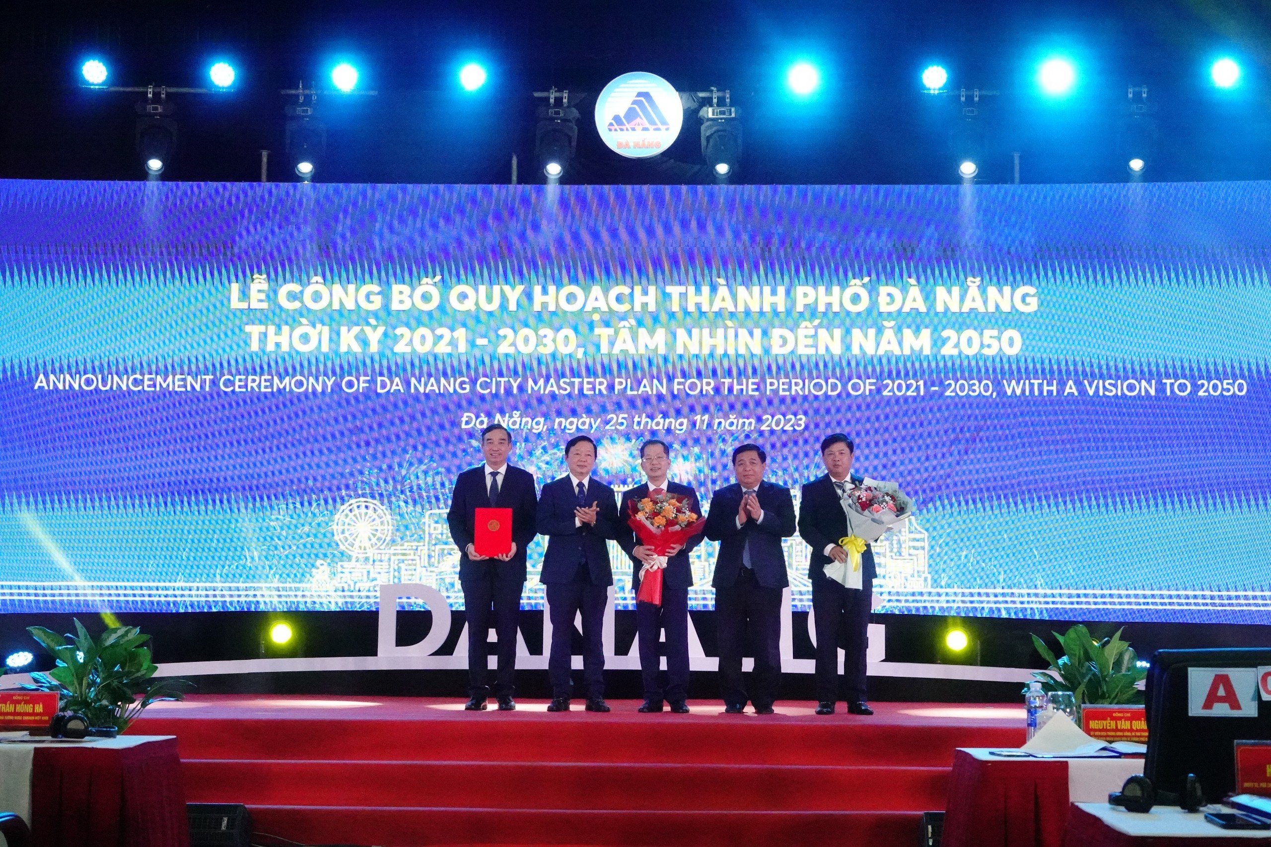 Phó Thủ tướng Trần Hồng Hà trao quyết định phê duyệt Quy hoạch thành phố Đà Nẵng thời kỳ 2021 - 2030, tầm nhìn đến năm 2050 cho lãnh đạo Đà Nẵng.
