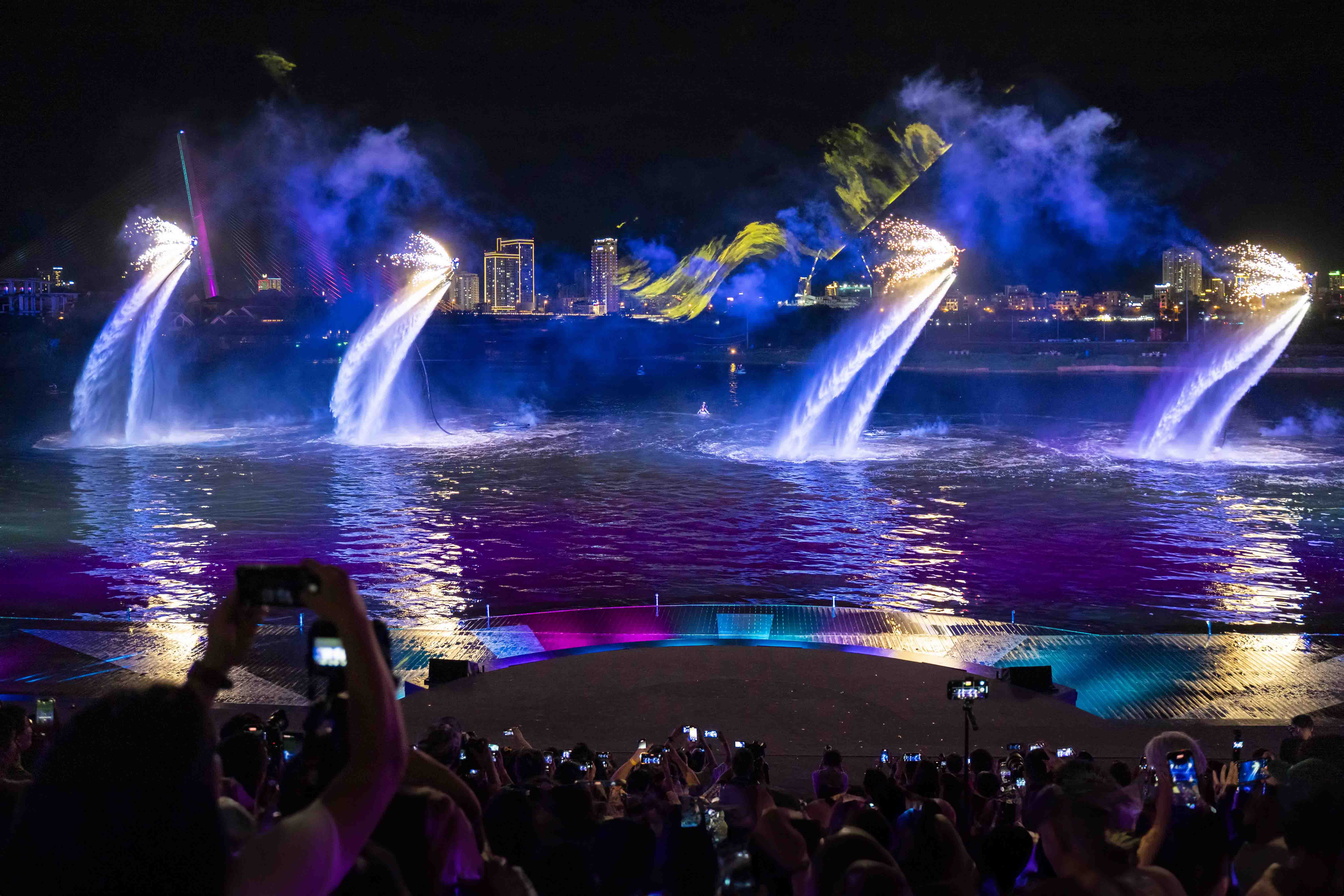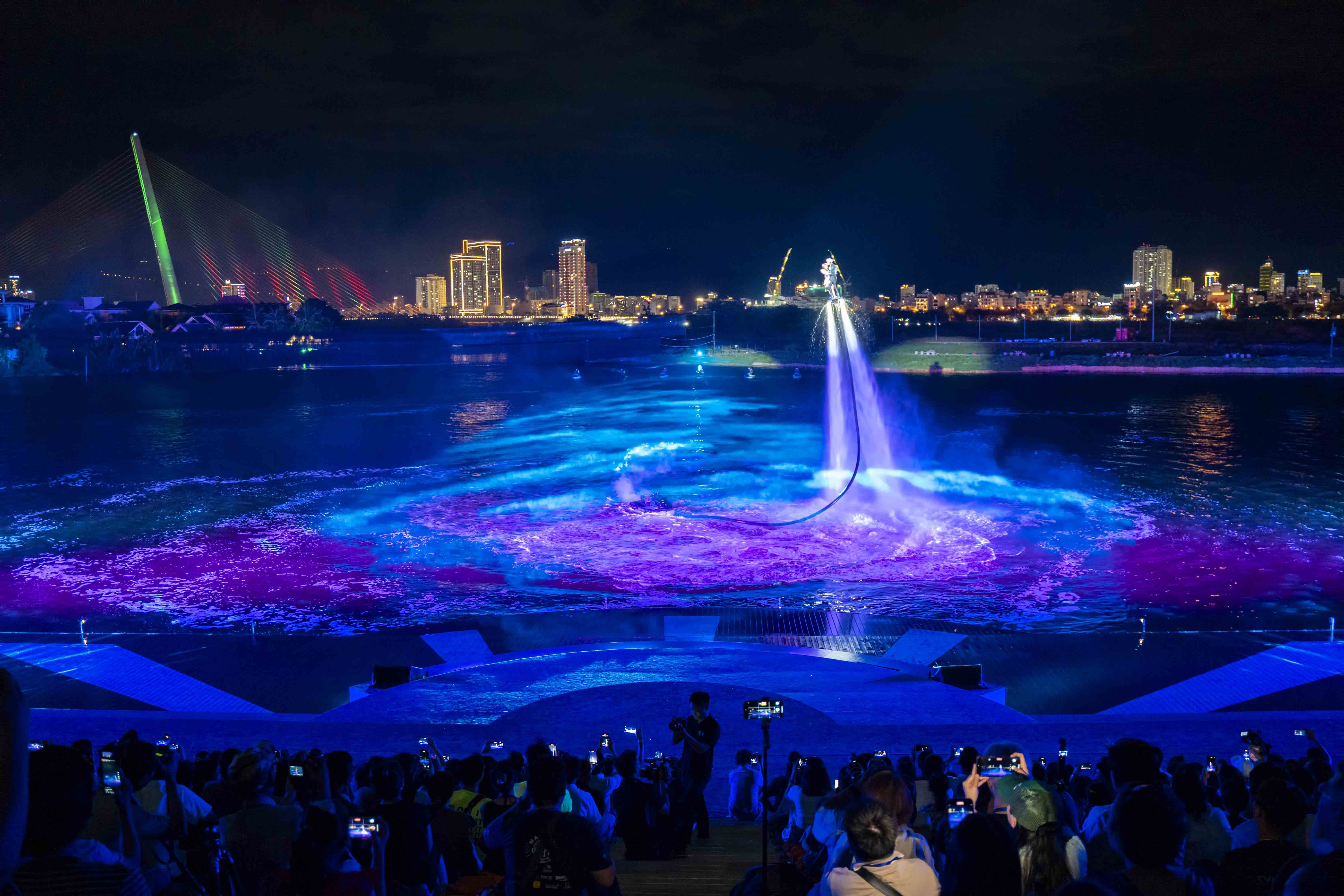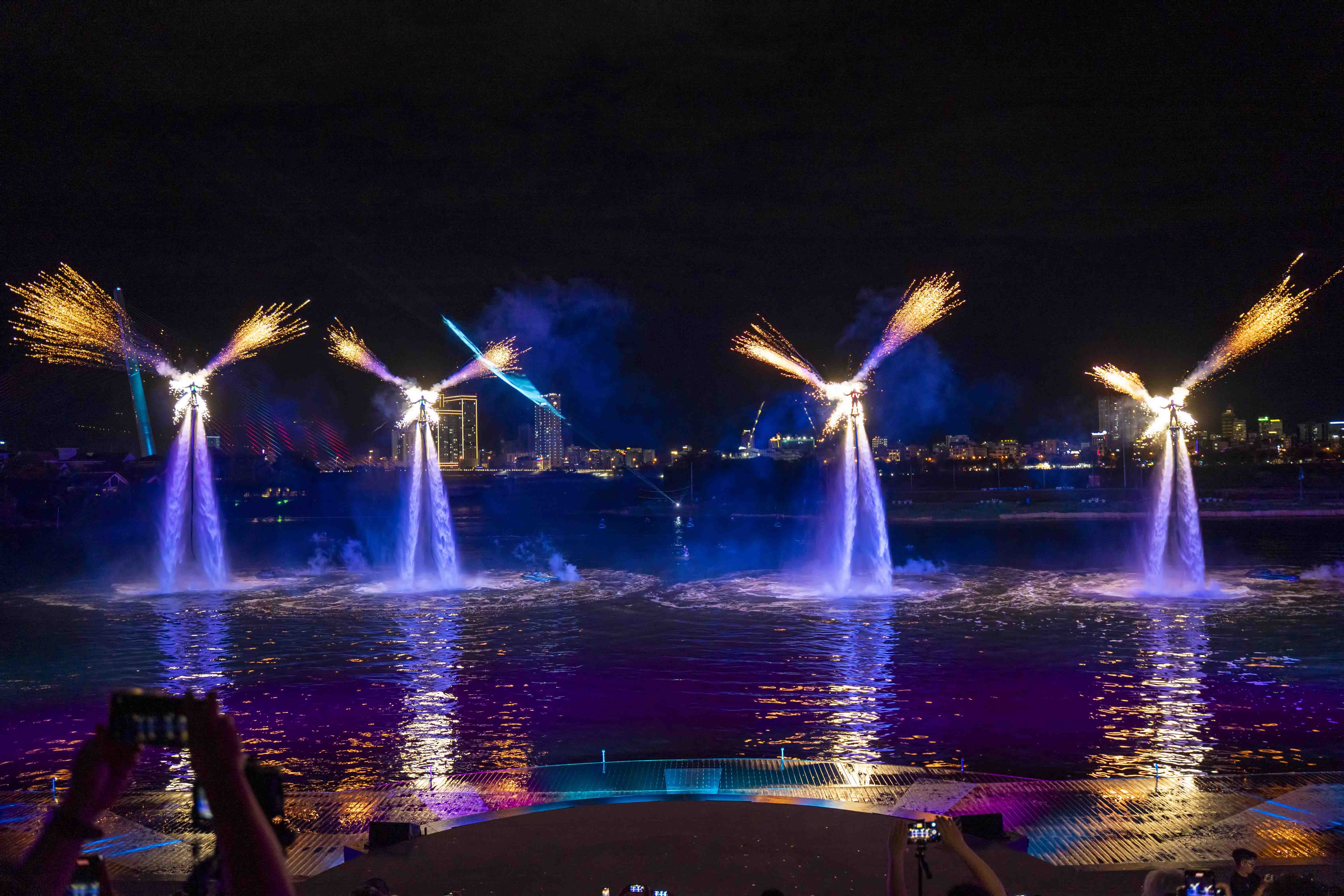 Bước vào chương“Ánh sáng” của show diễn, du khách sẽ được chiêm ngưỡng những vòng xoáy Flyboard vẽ lên không trung bức họa của nước và ánh sáng; những chiếc Jetski “xé” màn đêm bằng pháo sáng và những cú tăng tốc đầy mạo hiểm. Để rồi, tất cả như bùng nổ và vỡ òa cảm xúc vào 5 phút cuối của show diễn, khi những chùm pháo hoa bừng sáng, vút lên cao như một khúc tráng ca của dòng Hàn giang. Khoảnh khắc từng đợt pháo nối nhau “dệt hoa” trên nền trời cũng là lúc ca khúc chủ đề “Dancing Queen” vang lên, đưa du khách chìm đắm vào không gian nghệ thuật độc đáo, nơi mọi ranh giới đều được xóa nhòa.