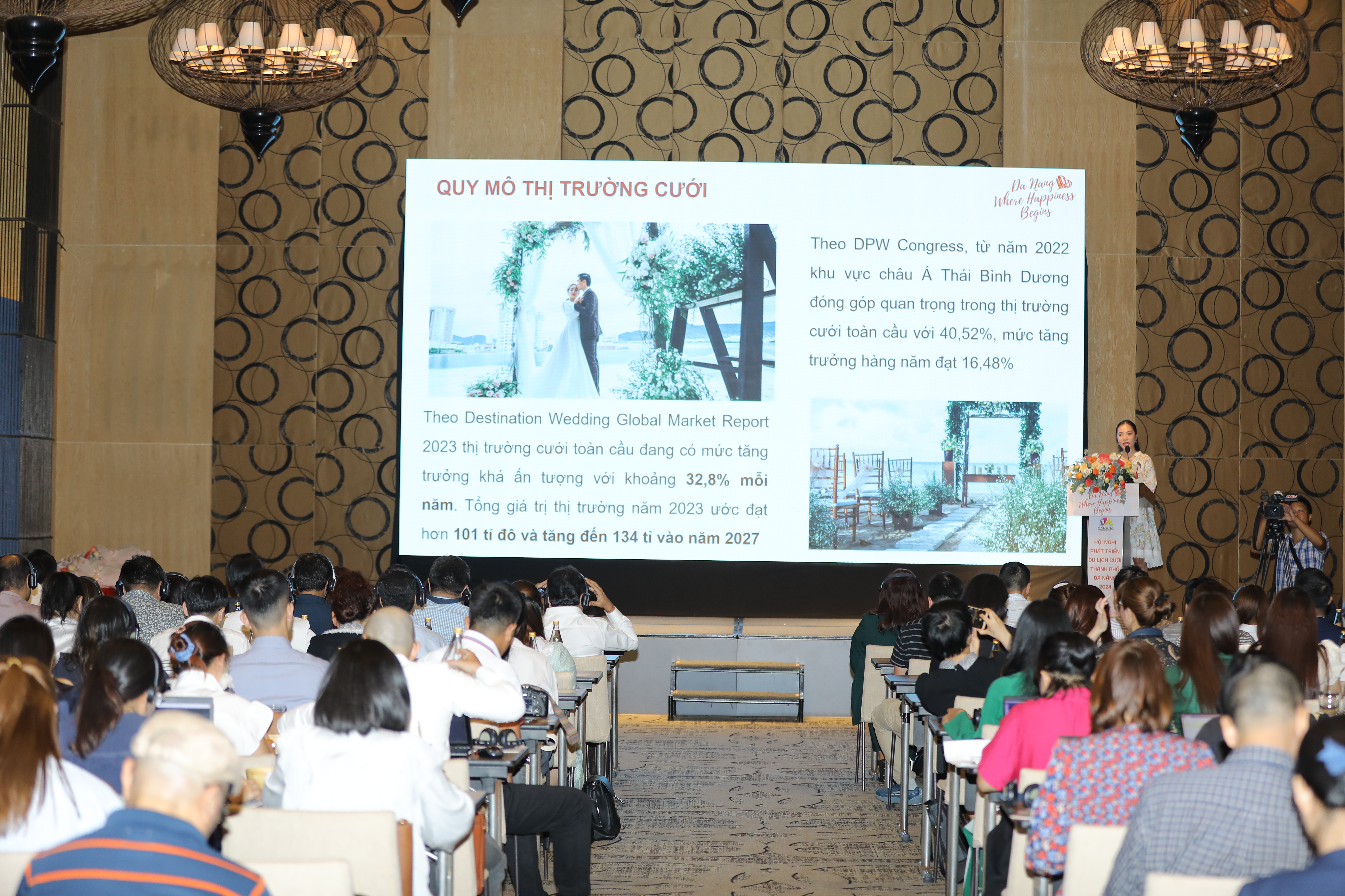 Cũng theo bà Lisa Viegas, thị trường du lịch cưới hiện đang có trị giá ước đạt 90 tỷ USD. Từ năm 2022 khu vực châu Á Thái Bình Dương đóng góp quan trọng trong thị trường cưới toàn cầu với 40,52%, mức tăng trưởng hàng năm đạt 16,48%. Cùng với Indonesia, Thái Lan, Maldives, Ấn Độ, Việt Nam nổi lên như một điểm đến cưới hấp dẫn trong khu vực này.