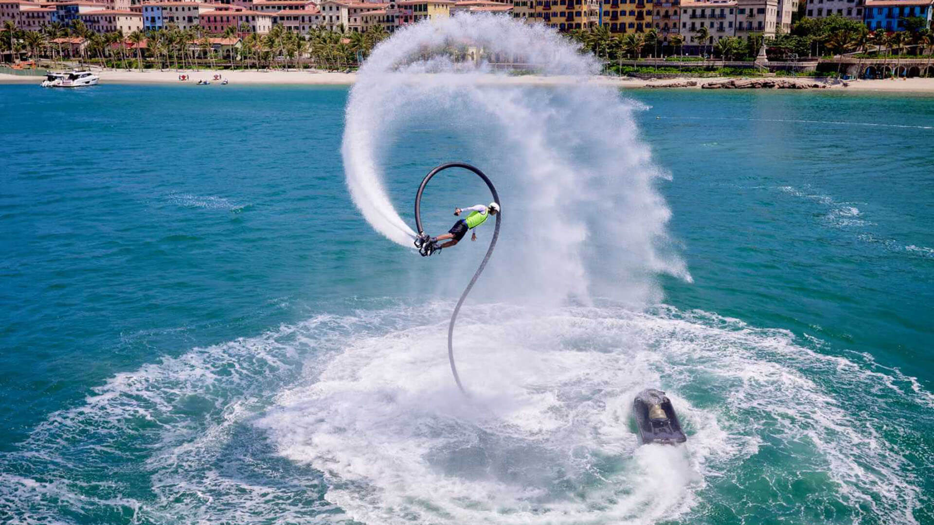 Show nghệ thuật thể thao mạo hiểm Jetski & Flyboards kết hợp với âm nhạc, ánh sáng, các vũ điệu điêu luyện trên mặt nước và pháo hoa.