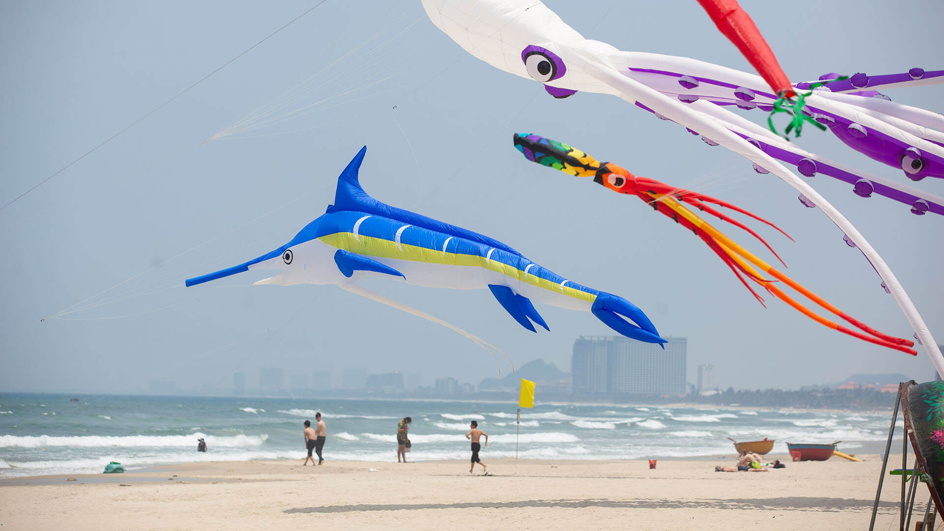 Thả diều nghệ thuật trên bãi biển Đà Nẵng.
