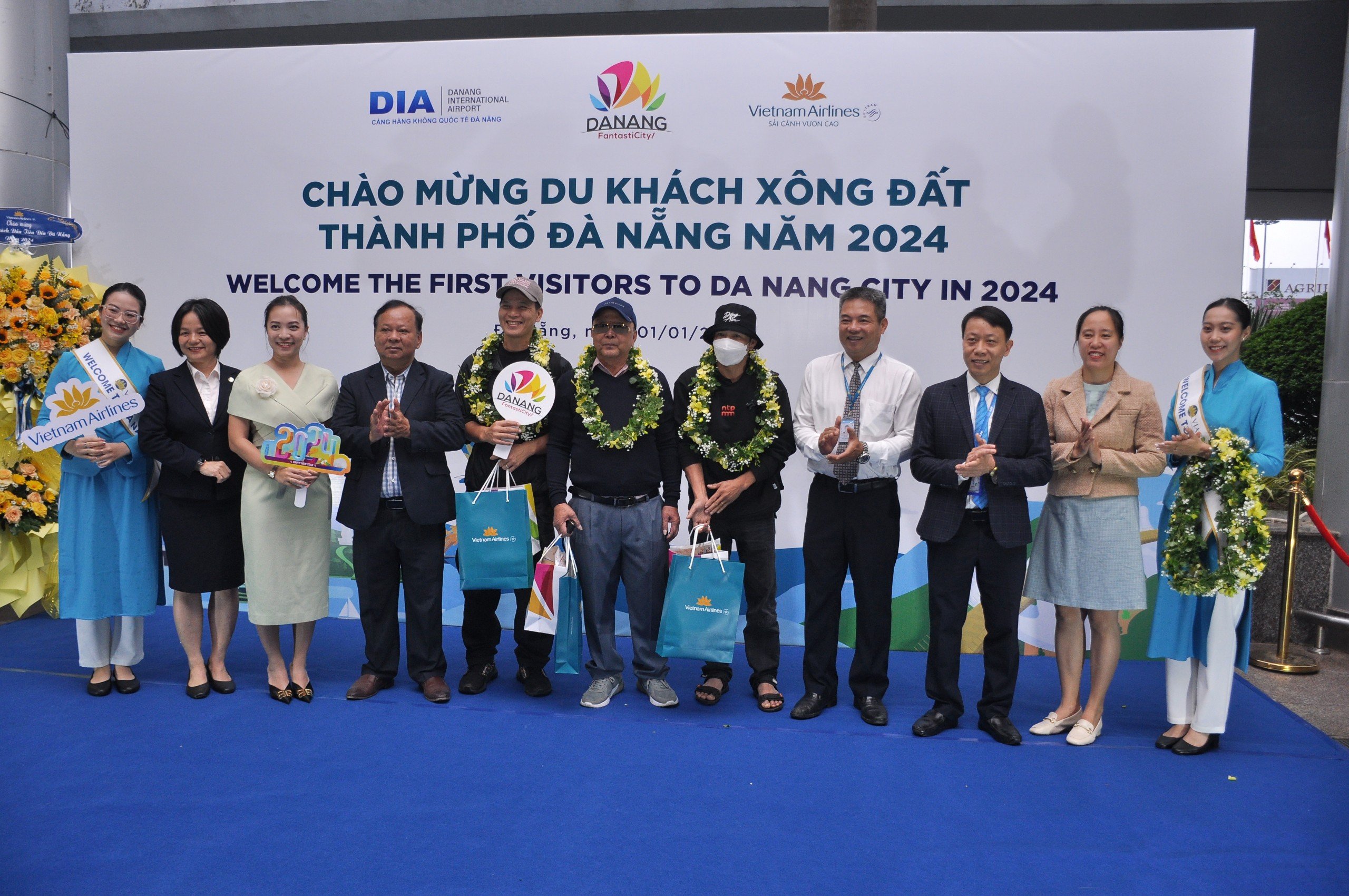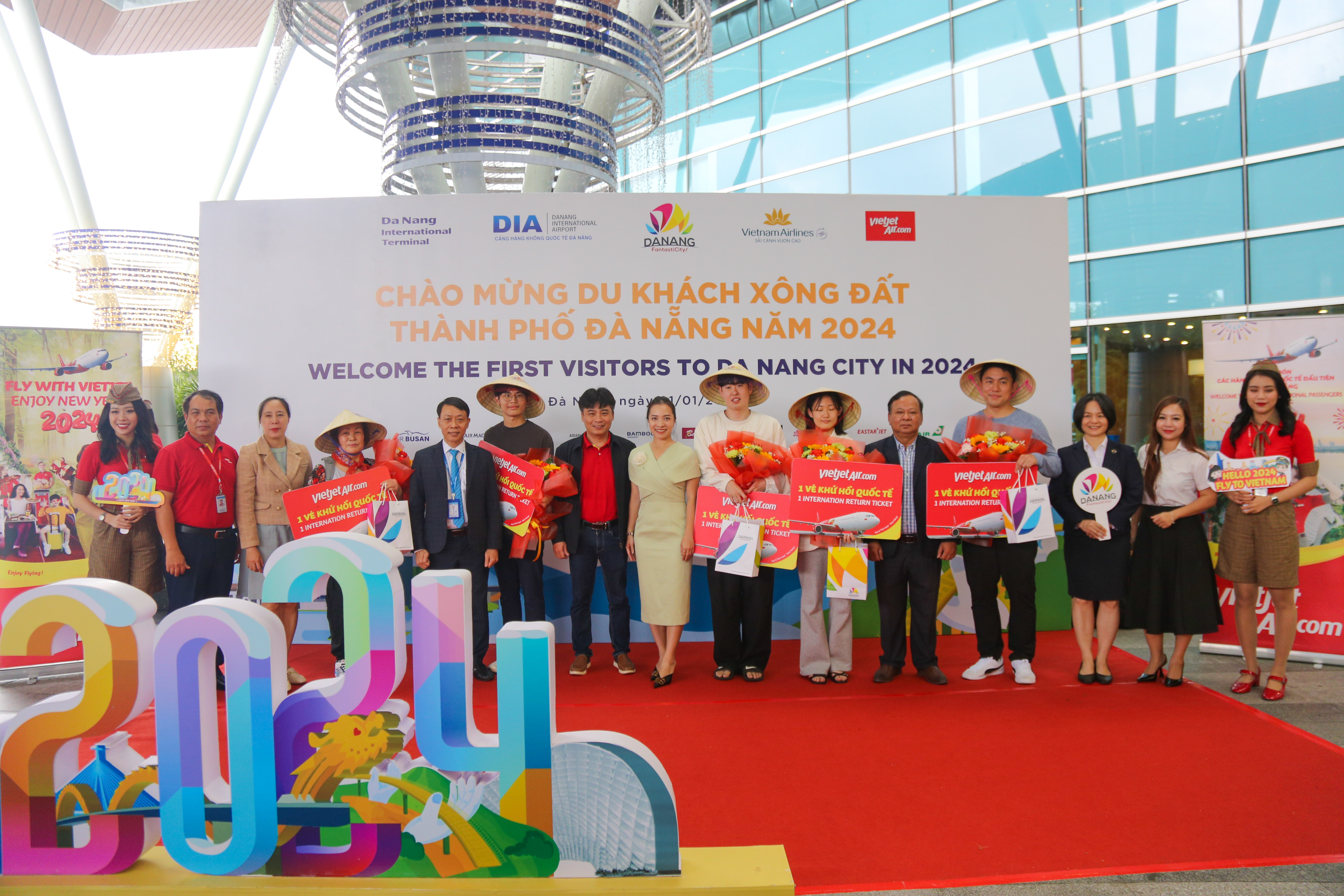 Sáng 1/1/2024, Sở Du lịch TP. Đà Nẵng phối hợp Cảng Hàng không Quốc tế Đà Nẵng, Công ty Cổ phần đầu tư khai thác nhà ga quốc tế Đà Nẵng và hãng hàng không Vietnam Airlines, Vietjet Air tổ chức chào đón những du khách nội địa và quốc tế đầu tiên đến Đà Nẵng nhân dịp Tết Dương lịch 2024.