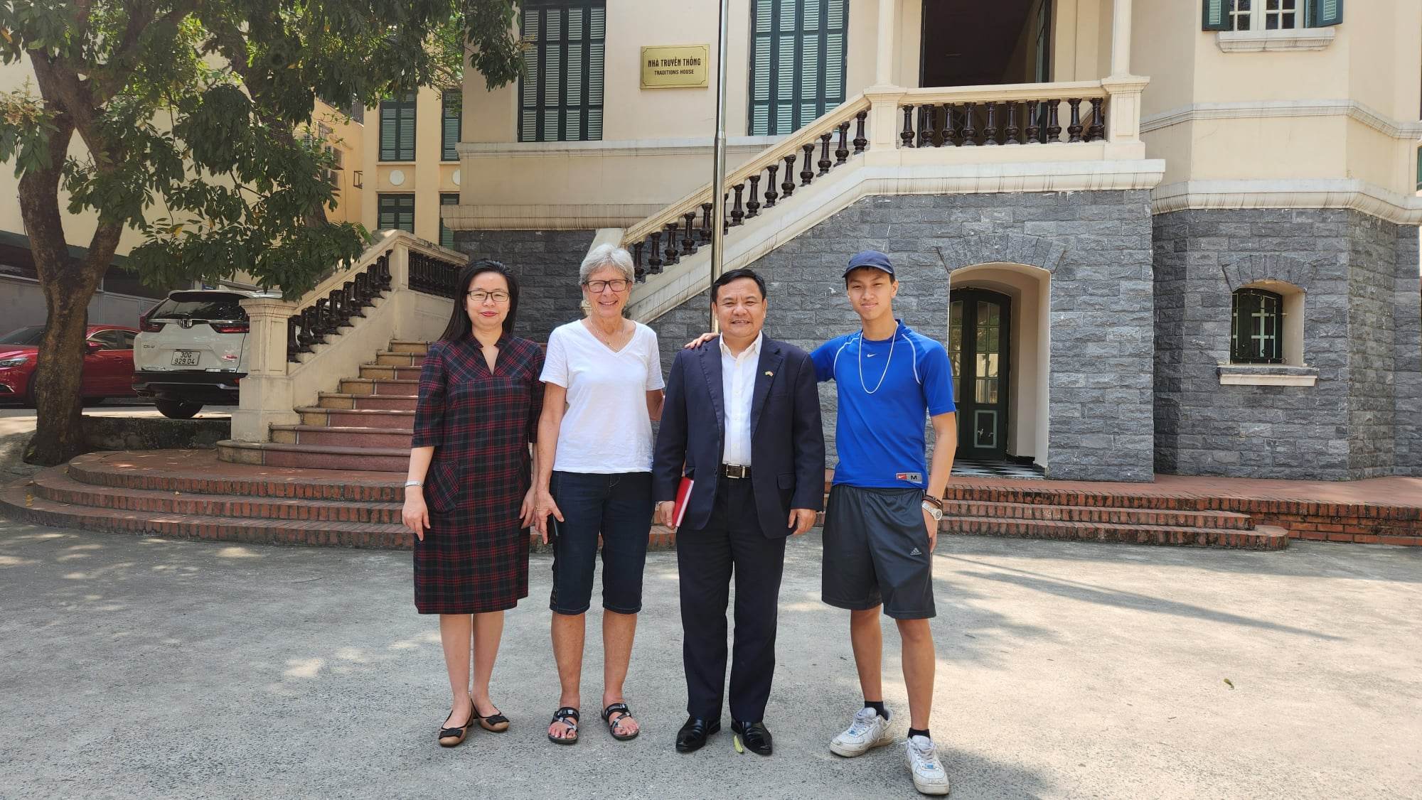 Ông Bùi Văn Nghị, Tổng thư ký Hội Việt - Mỹ, Trưởng ban Ban Châu Mỹ, Liên hiệp các tổ chức hữu nghị Việt Nam chụp ảnh kỷ niệm với Bà Cherri Mellor và con trai