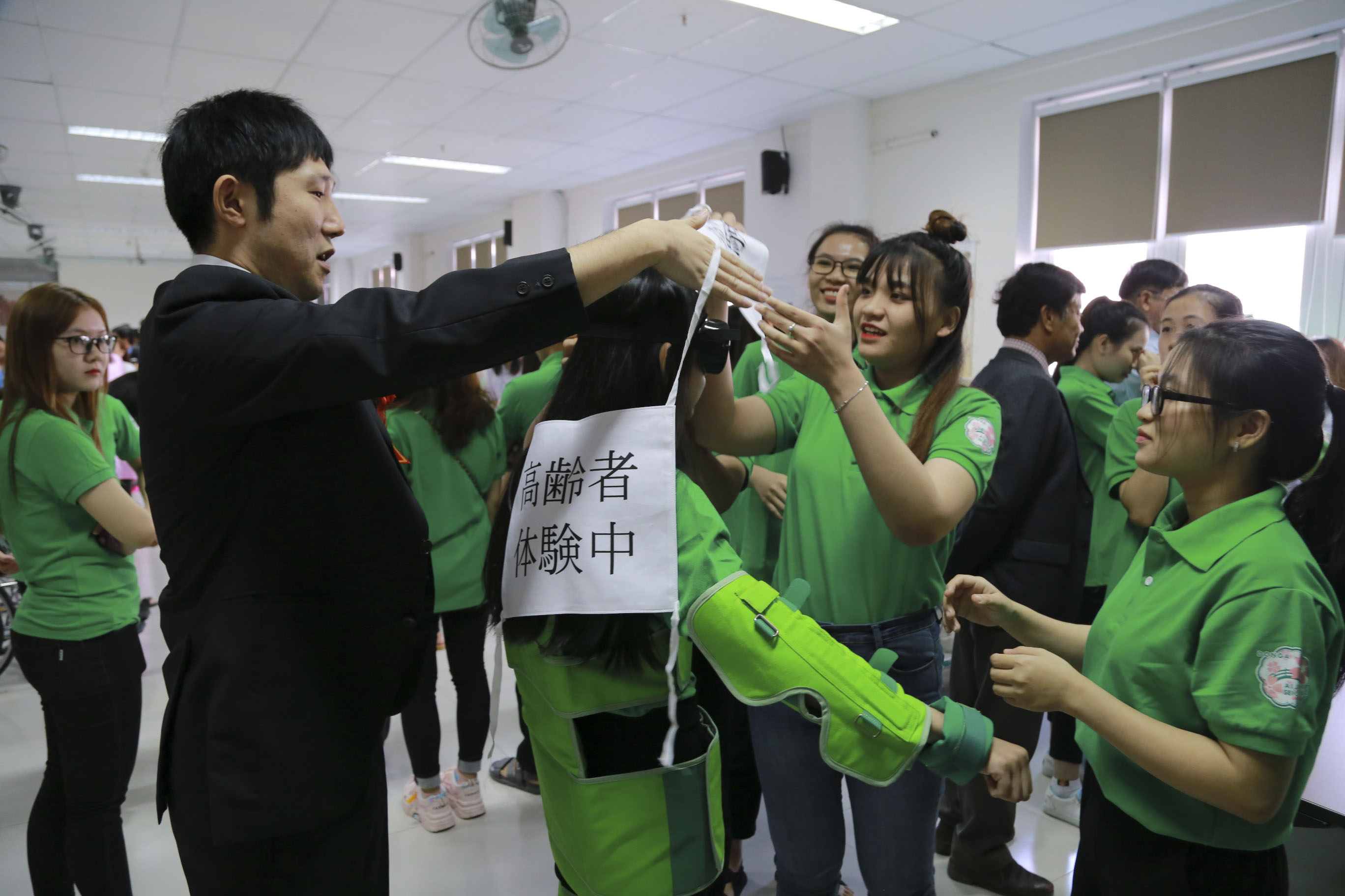 Sinh viên ĐH Đông Á được các chuyên gia Nhật Bản hướng dẫn kỹ thuật phục hồi chức năng theo tiêu chuẩn Nhật ngay tại phòng thực hành skills lab ở trường.