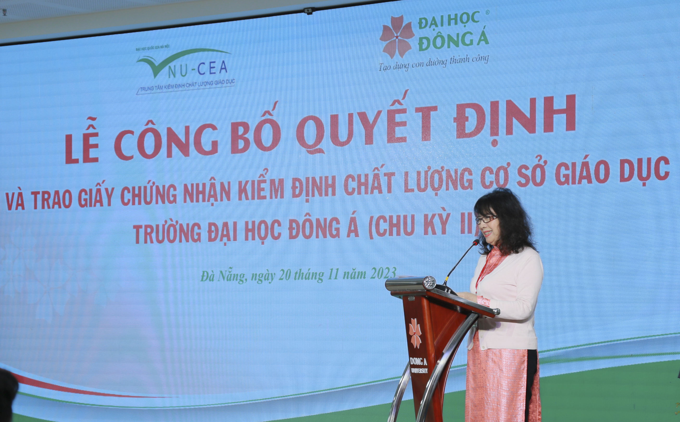 Phát biểu tại chương trình, TS. Tạ Thị Thu Hiền – Giám đốc Trung tâm Kiểm định chất lượng giáo dục – ĐH Quốc gia Hà Nội nhận định, trong giai đoạn 2018-2023, Đại học Đông Á đã nỗ lực cải tiến chất lượng và thực hiện các cam kết cải tiến chất lượng sau kiểm định chất lượng giáo dục chu kỳ 1 (2012-2017).