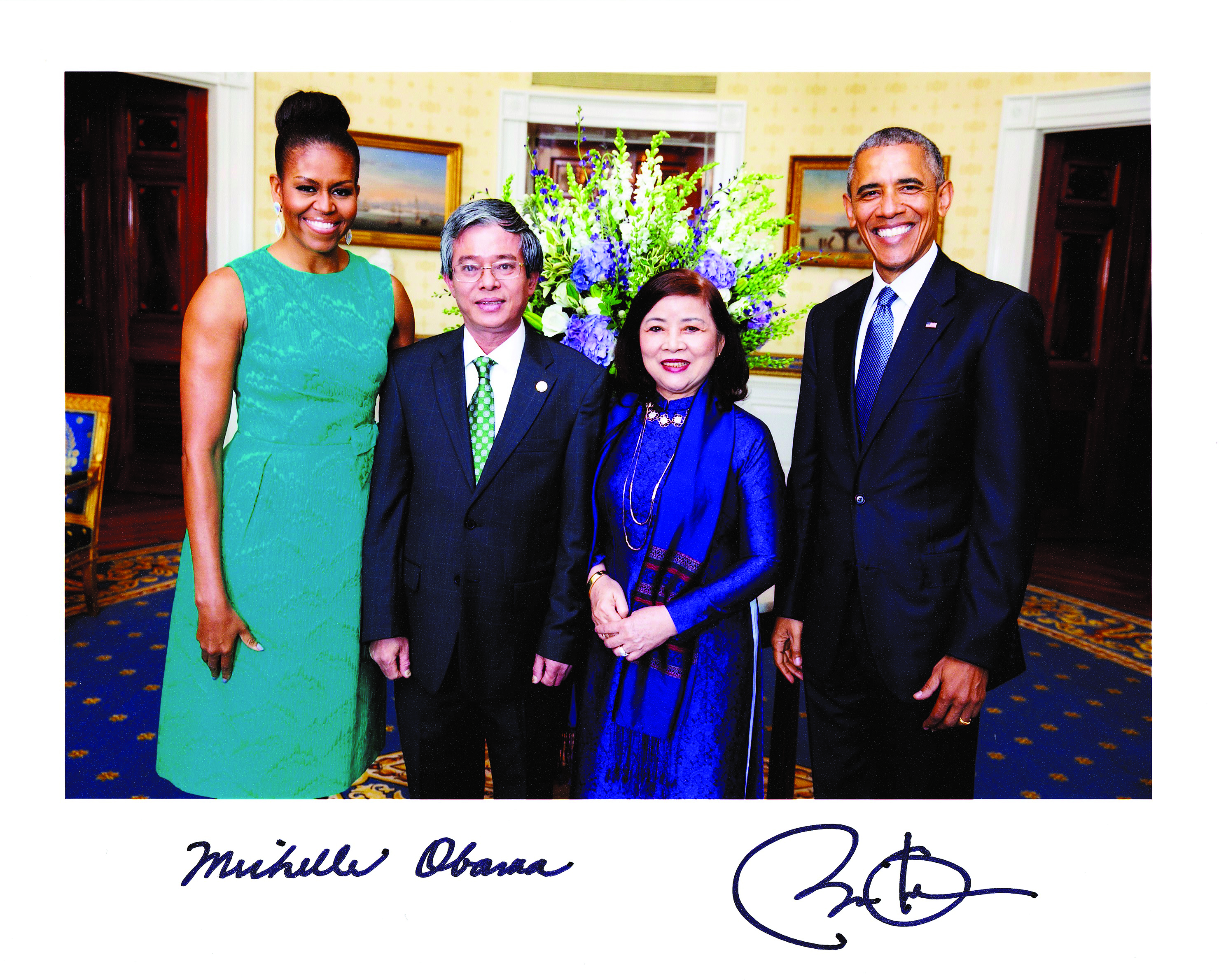 Đại sứ Phạm Quang Vinh và phu nhân chụp ảnh cùng vợ chồng Tổng thống Obama