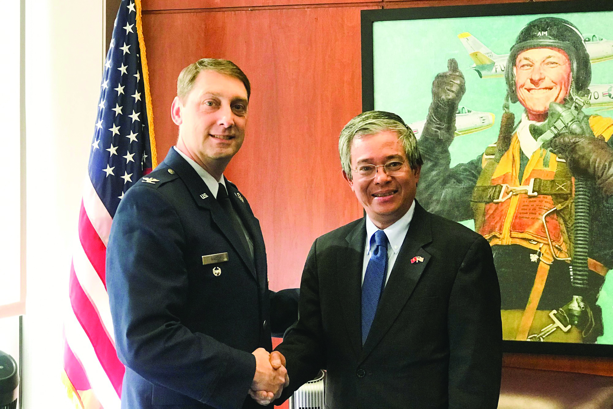 Đại sứ Việt Nam tại Hoa Kỳ Phạm Quang Vinh và đại diện Học viện Không quân Hoa Kỳ David Harris