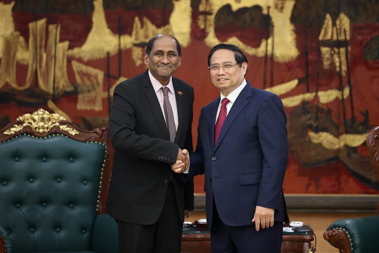 Thủ tướng Phạm Minh Chính tiếp Đại sứ Singapore Jaya Ratnam tới chào từ biệt nhân kết thúc nhiệm kỳ công tác - Ảnh: VGP/Nhật Bắc