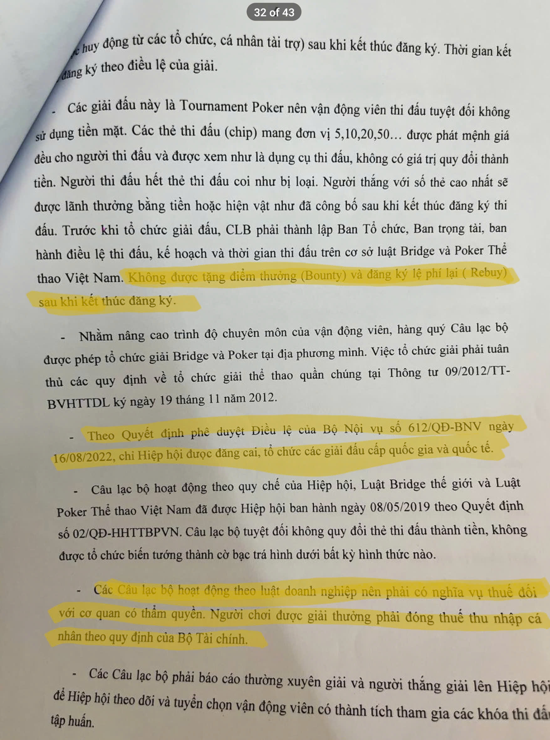 Quy chế của Hiệp hội Thể thao Bridge và Poker Việt Nam nghiêm cấm các hành vi tặng điểm thưởng và đăng ký lệ phí lại