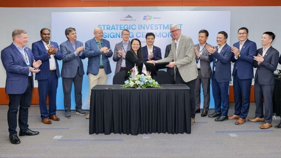 Lãnh đạo FPT và Cardinal Peak tại lễ ký kết M&A. Ảnh: FPT