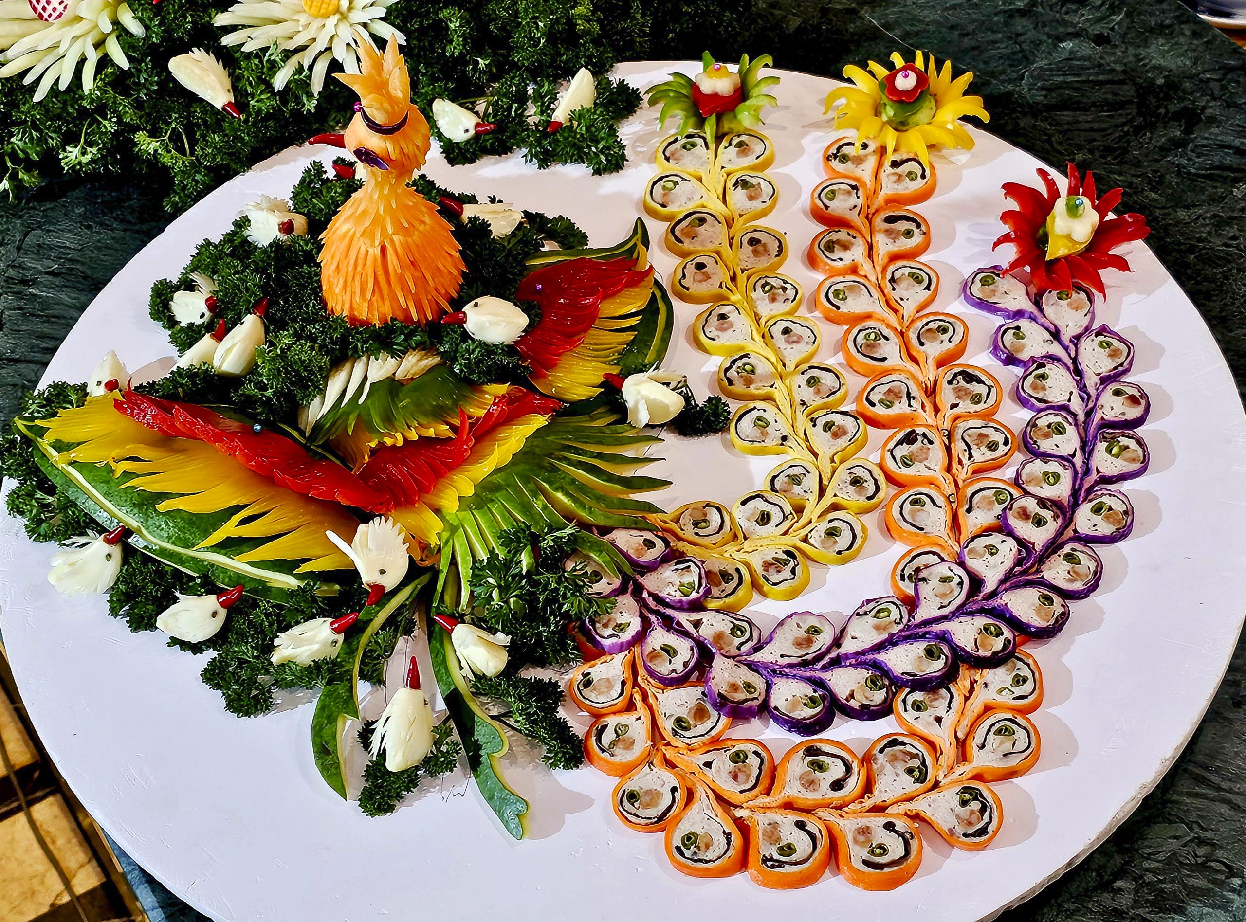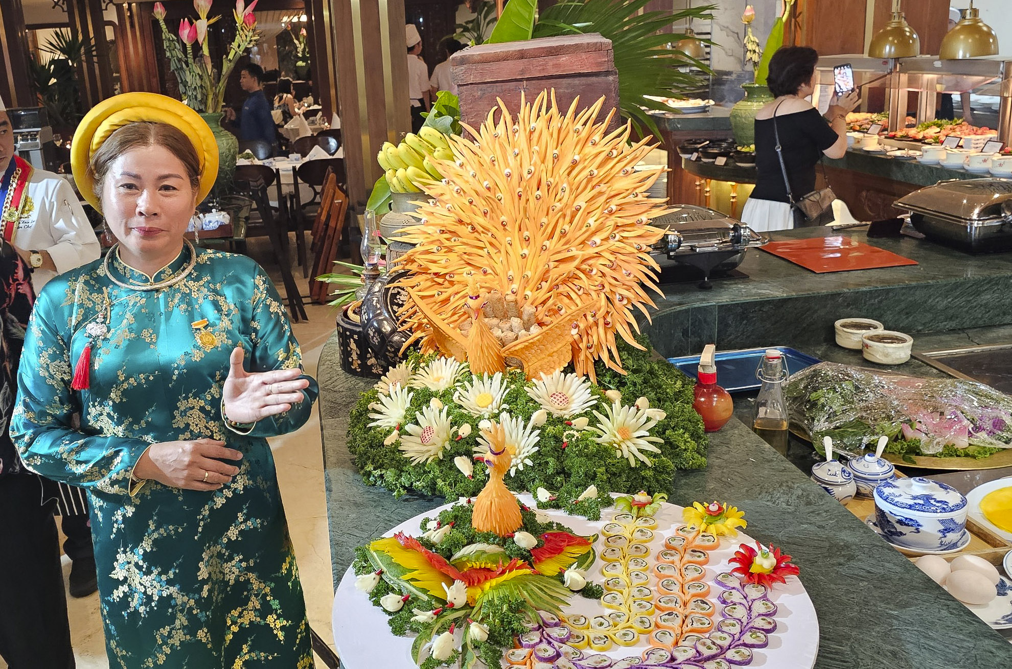 Nghệ nhân ẩm thực Phan Tôn Gia Hiền công diễn món "Nem hình Công - chả hình Phụng" tại sự kiện.