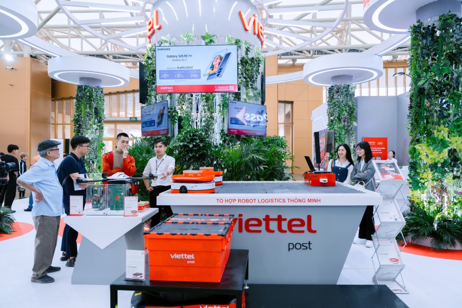 “Cuộc sống kiến tạo”: Tâm điểm của khu vực này là robot logistics thông minh có khả năng tự di chuyển, vận chuyển vật phẩm mô phỏng trong không gian trưng bày. Cùng với đó, nền tảng quản lý bán hàng Tendoo được tích hợp trợ lý ảo AI giúp các hộ kinh doanh, doanh nghiệp vừa và nhỏ tối ưu quy trình, bán hàng nhanh trên mọi loại thiết bị, tự động lên sổ sách kê khai thuế – minh chứng cho cách Viettel ứng dụng công nghệ để giải bài toán vận hành thực tiễn.