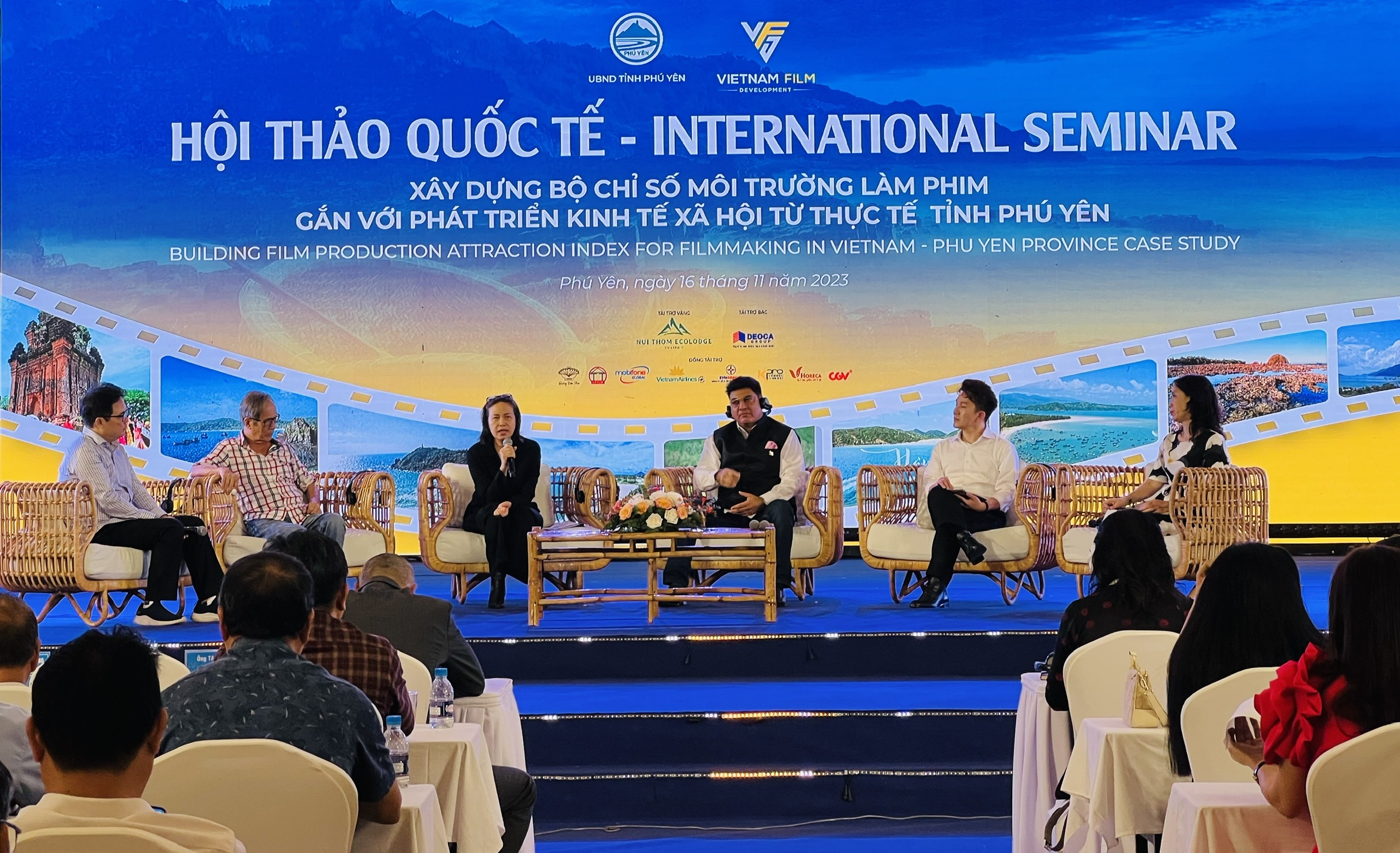 Sáng nay (16/11/2023), hội thảo quốc tế “Bộ chỉ số môi trường làm phim gắn với phát triển kinh tế - xã hội từ thực tế tỉnh Phú Yên” - một hoạt động nổi bật trong chương trình Điện ảnh với Phú Yên - được tổ chức tại resort Núi Thơm (TP Tuy Hòa, tỉnh Phú Yên). Hội thảo có sự tham gia của lãnh đạo tỉnh Phú Yên, Hiệp hội Xúc tiến phát triển điện ảnh Việt Nam, đại diện các cơ quan, ban ngành trung ương. Đặc biệt, hội thảo có sự tham gia của các vị khách nước ngoài: đại diện các đại sứ quán, các chuyên gia điện ảnh hàng đầu trên thế giới, các nhà làm phim, chuyên gia điện ảnh tại Việt Nam...