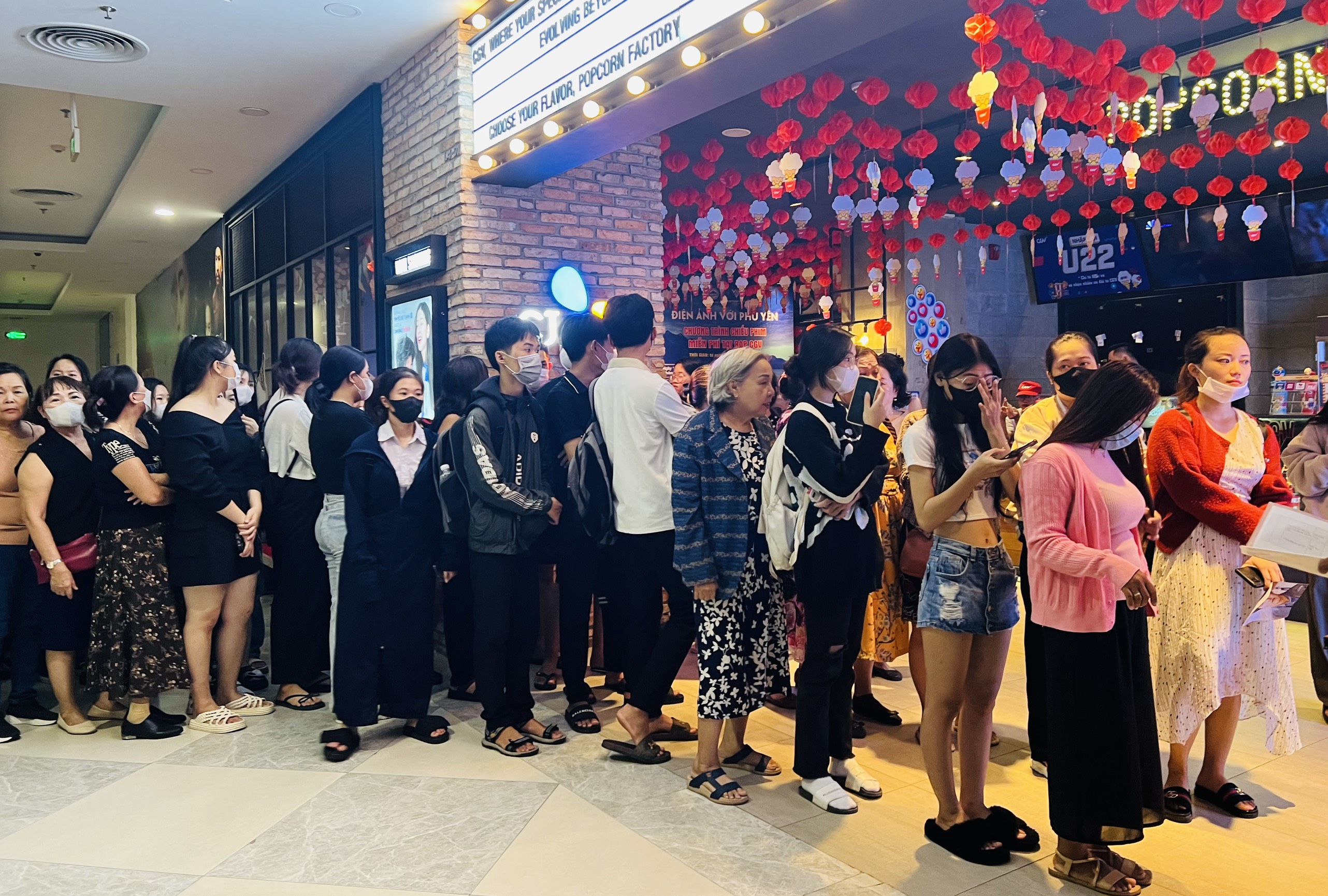 Khán giả xếp hàng nhận vé xem phim tại rạp CGV Vincom Phú Yên. Nguồn: PYO