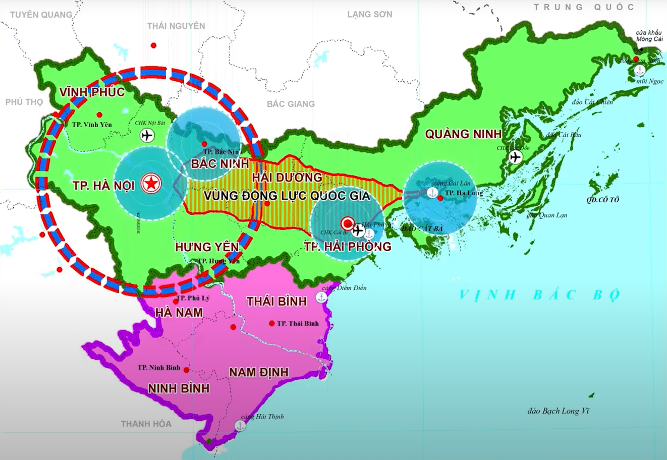 Theo Quyết định số 612/QĐ-TTg, Thủ tướng Chính phủ đã phê duyệt điều chỉnh Quy hoạch vùng Đồng bằng sông Hồng thời kỳ 2021–2030, tầm nhìn đến năm 2050. Phạm vi quy hoạch bao gồm toàn bộ lãnh thổ đất liền của Hà Nội, Hải Phòng và các tỉnh Ninh Bình, Hưng Yên, Bắc Ninh, Quảng Ninh, cùng phần không gian biển, đảo theo quy định pháp luật có liên quan.