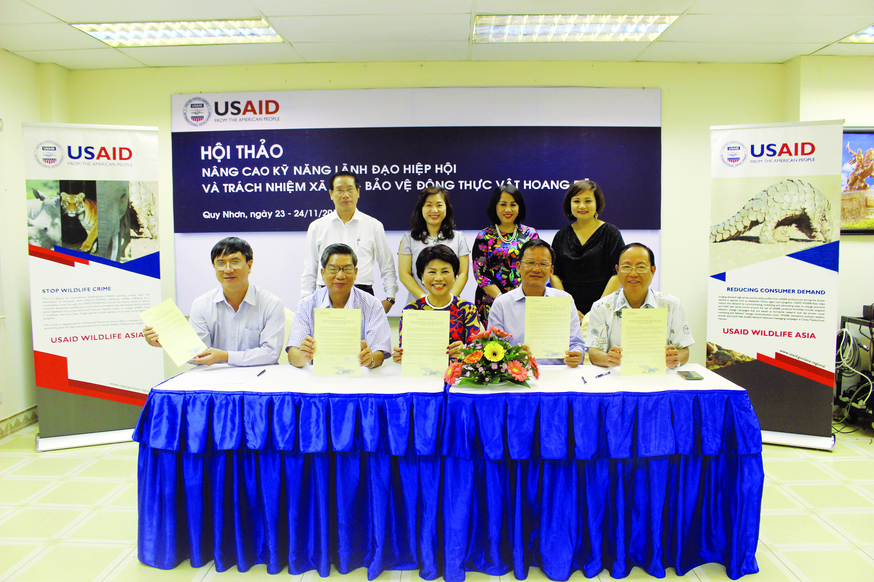 Vừa qua, Cơ quan Phát triển Quốc tế Hoa Kỳ (USAID) cùng Phòng Thương mại và Công nghiệp Việt Nam đã tổ chức một hội thảo tại Quy Nhơn với sự tham gia của các nhà lãnh đạo doanh nghiệp khu vực miền Trung Việt Nam. Đại diện hiệp hội các doanh nghiệp đã cam kết tích cực chống lại việc tiêu thụ trái phép các sản phẩm có nguồn gốc từ động vật hoang dã thông qua đề xuất và xây dựng những sáng kiến mới nhằm đối phó với tội phạm về động vật hoang dã và xoá bỏ những lời đồn thổi không có cơ sở khoa học về tác dụng của các sản phẩm này.