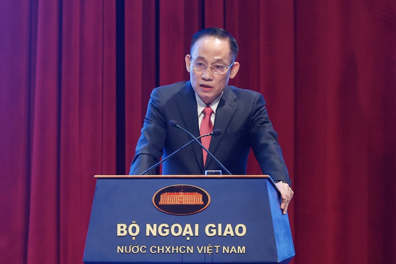 Hội nghị Tổng kết công tác ngành ngoại giao năm 2024 và phương hướng nhiệm vụ trọng tâm năm 2025 diễn ra trong không khí phấn khởi của Năm mới 2025 và cùng cả nước quyết tâm cao thực hiện thắng lợi các kết luận của Trung ương, Bộ Chính trị, Ban Bí thư, các nghị quyết của Quốc hội và Chính phủ về triển khai Kế hoạch phát triển kinh tế - xã hội năm 2025 và Kế hoạch phát triển kinh tế - xã hội 5 năm 2021-2025 nhằm đưa đất nước tăng tốc, bứt phá bước sang kỷ nguyên mới - kỷ nguyên vươn mình của dân tộc.