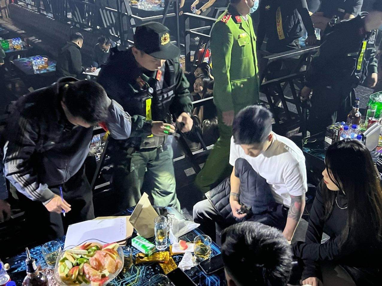 Tiến hành kiểm tra bất ngờ tại một số bàn rượu, lực lượng chức năng đã phát hiện và thu giữ 2,366 gam Cần sa; 1,826 gam MDMA và nhiều đồ vật, dụng cụ có liên quan đến việc sử dụng trái phép chất ma túy.
