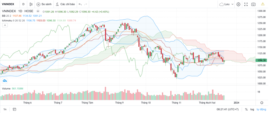 Diễn biến chỉ số VN-INDEX trong phiên ngày 19/12/2023. Nguồn: FPTS