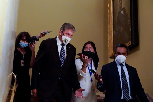 Thượng nghị sĩ Joe Manchin của đảng Dân chủ Mỹ trả lời phóng viên sau cuộc bỏ phiếu hôm 27-9 Ảnh: REUTERS
