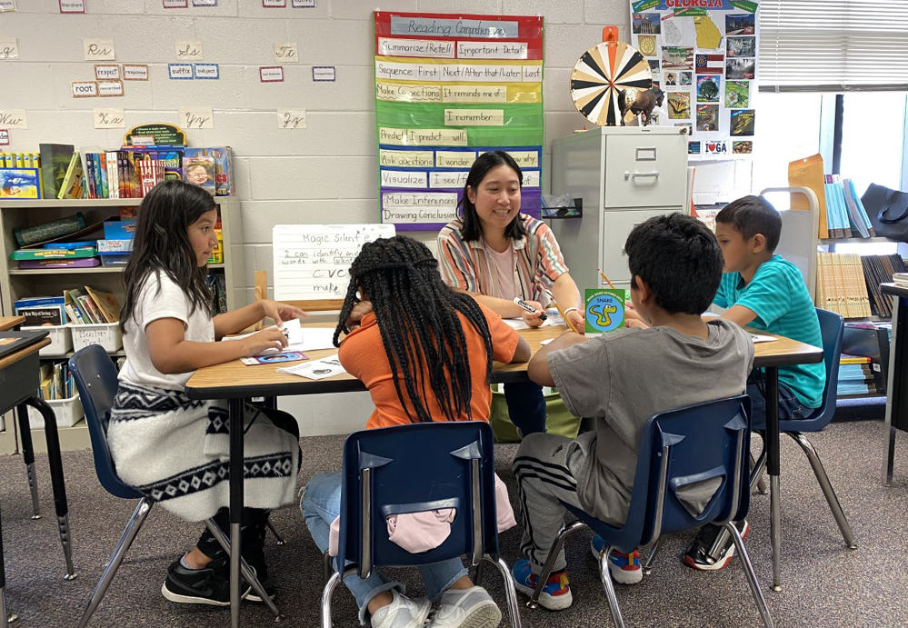 Chị Hồng trong một giờ dạy lớp 3 ở trường Tiểu học Bethesda, học khu Gwinnett, tiểu bang Georgia, Mỹ. Ảnh: Nhân vật cung cấp