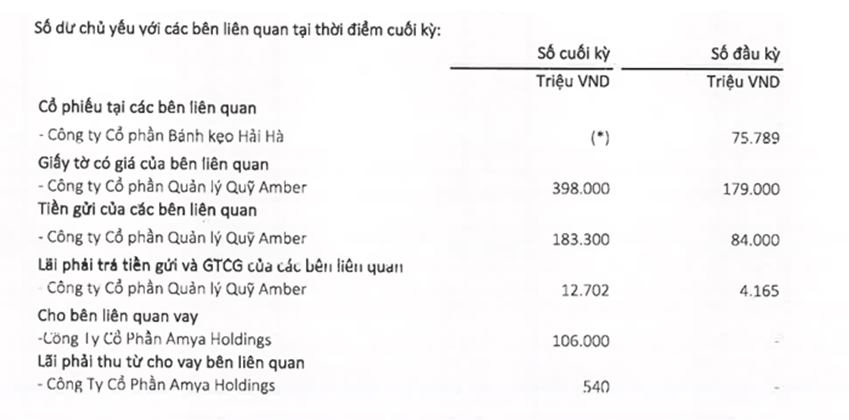 EVN Finance cũng cho Công ty Cổ phần Amya Holdings của ông Nguyễn Trung Thành, đồng thời là Thành viên HĐQT của 2 công ty này vay 106 tỷ đồng và ghi nhận lãi phải thu 540 triệu đồng.