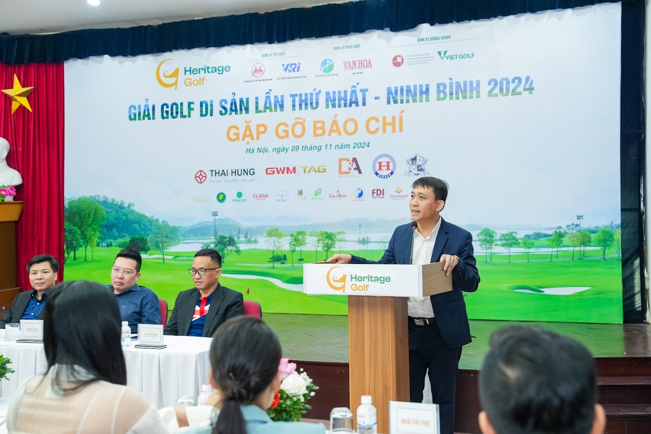 Phát biểu tại sự kiện, ông Nguyễn Xuân Khánh - Chủ tịch Hội đồng Quản trị Công ty Cổ phần Truyền thông Đối ngoại Việt Nam thông tin về chuỗi hoạt động nổi bật diễn ra tại Giải Golf di sản như: Tọa đàm “Kết nối di sản và thể thao Golf: cơ hội và thách thức”; Tour Di sản Ninh Bình: Tham quan, trải nghiệm di tích trong quần thể danh thắng Tràng An, phố cổ Hoa Lư… ; Giải Golf di sản tại sân Golf Hoàng gia Ninh Bình.