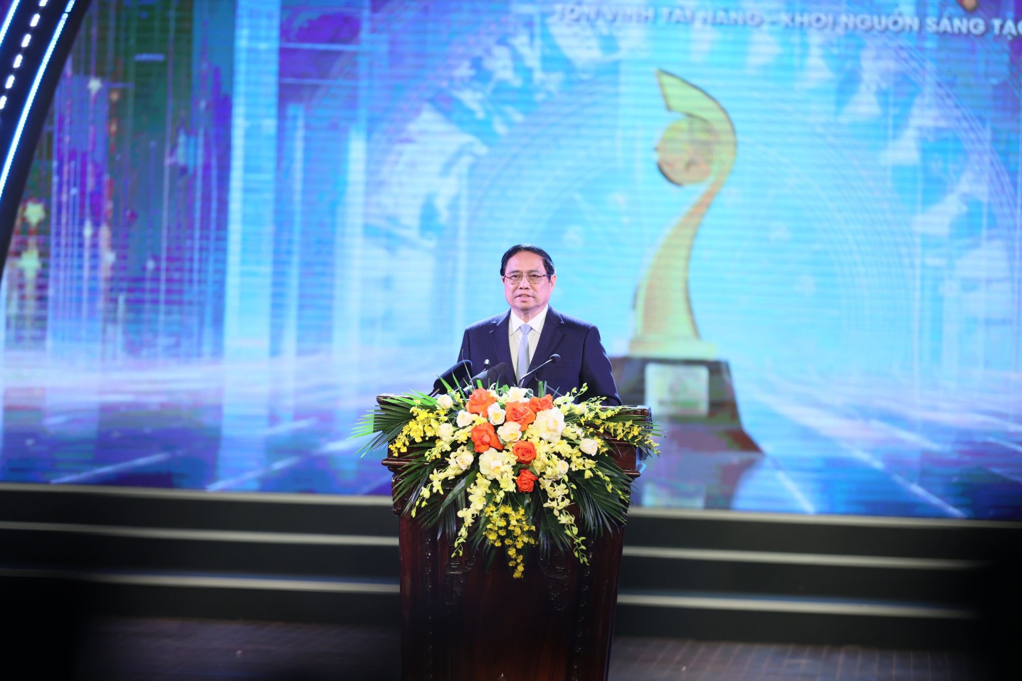 Trao giải Nhất cho các tác giả, nhóm tác giả xuất sắc, phát biểu tại sự kiện, Thủ tướng Chính phủ Phạm Minh Chính nhấn mạnh, “Hiền tài là nguyên khí của quốc gia”.