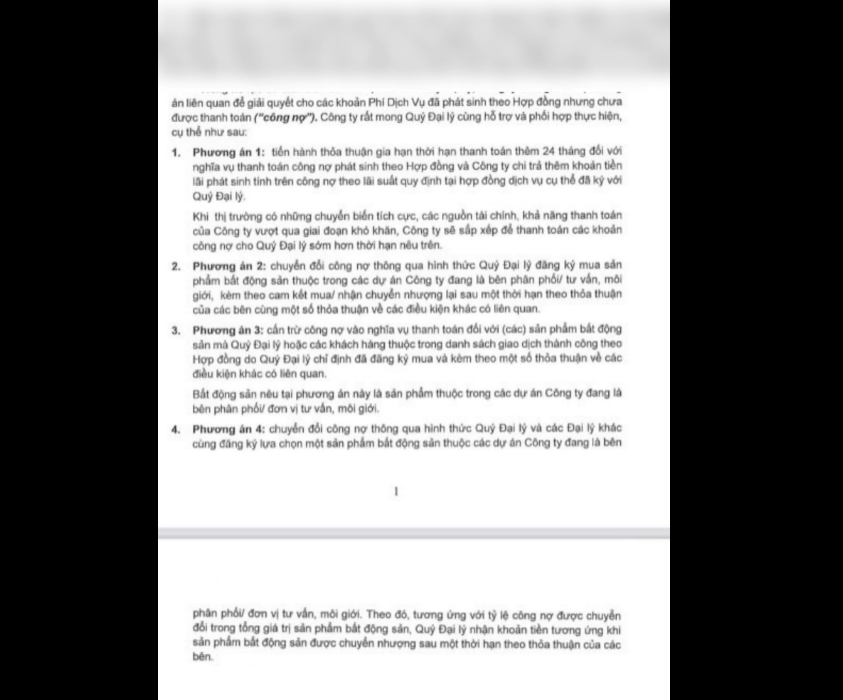 Bức xúc, chị V. đã nhiều lần yêu cầu phía Tập đoàn trả lời thì nhận được 4 phương án trả nợ từ Novaland bao gồm: