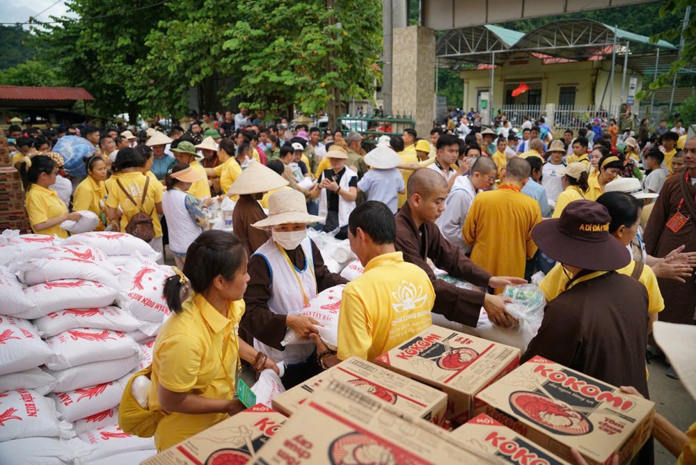 Theo đó, Đoàn Ban Từ thiện Xã hội Trung ương Giáo hội Phật giáo Việt Nam đã ủng hộ 1.000 phần quà cho nhân dân chịu ảnh hưởng của thiên tai, tổng trị giá 1,2 tỷ đồng; ủng hộ tiền xây dựng 15 căn nhà tình thương, tổng trị giá 900 triệu đồng và 65 triệu đồng cho Trường THCS Chiềng Chăn, huyện Mai Sơn.