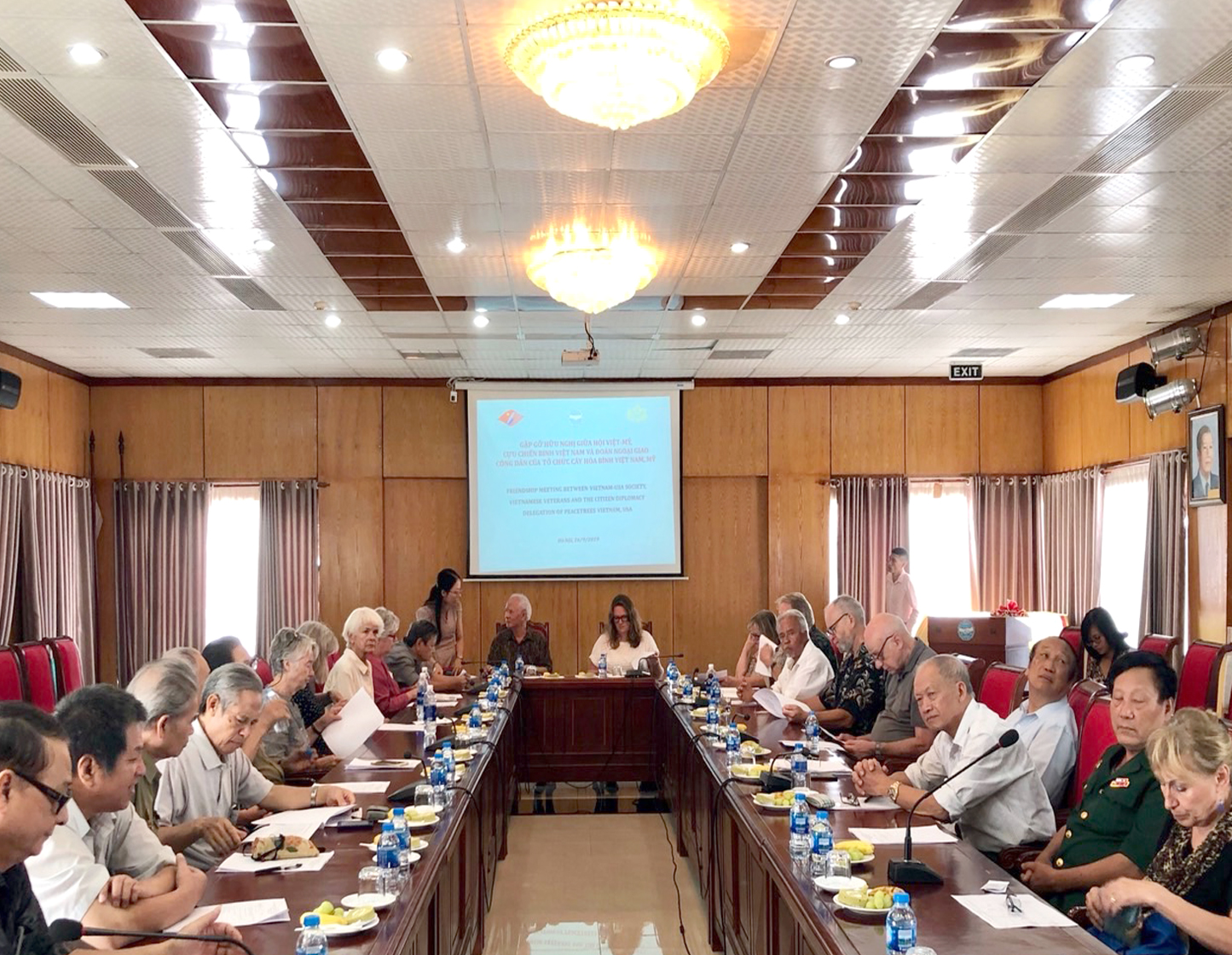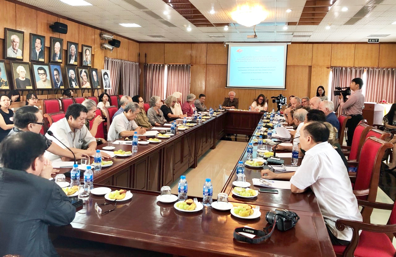 Cuộc gặp mặt các cựu chiến binh và các nhà tài trợ Mỹ được tổ chức nhân kỷ niệm Ngày thành lập Việt- Mỹ thân hữu Hội (17/10/1945-17/10/2019), tổ chức hữu nghị đầu tiên của Việt Nam, tiền thân của Hội Việt-Mỹ (được coi là ngày Truyền thống của Hội Việt-Mỹ), và tới năm 2020 là kỷ niệm 25 quan hệ Việt Nam và Hoa Kỳ (12/7/1995-12/7/2020).Trong dịp này đoàn của tổ chức “Cây hòa bình Việt Nam” (PTVN), theo “Chương trình đối ngoại công dân” gồm các cựu chiến binh Mỹ qua các thế hệ, các nhà tài trợ của tổ chức PTVN, do bà Claire Yunker, Giám đốc Điều hành của PTVN, làm Trưởng đoàn, đang vào thăm, tìm hiểu Việt Nam từ ngày 14/9 đến 30/9/2019.