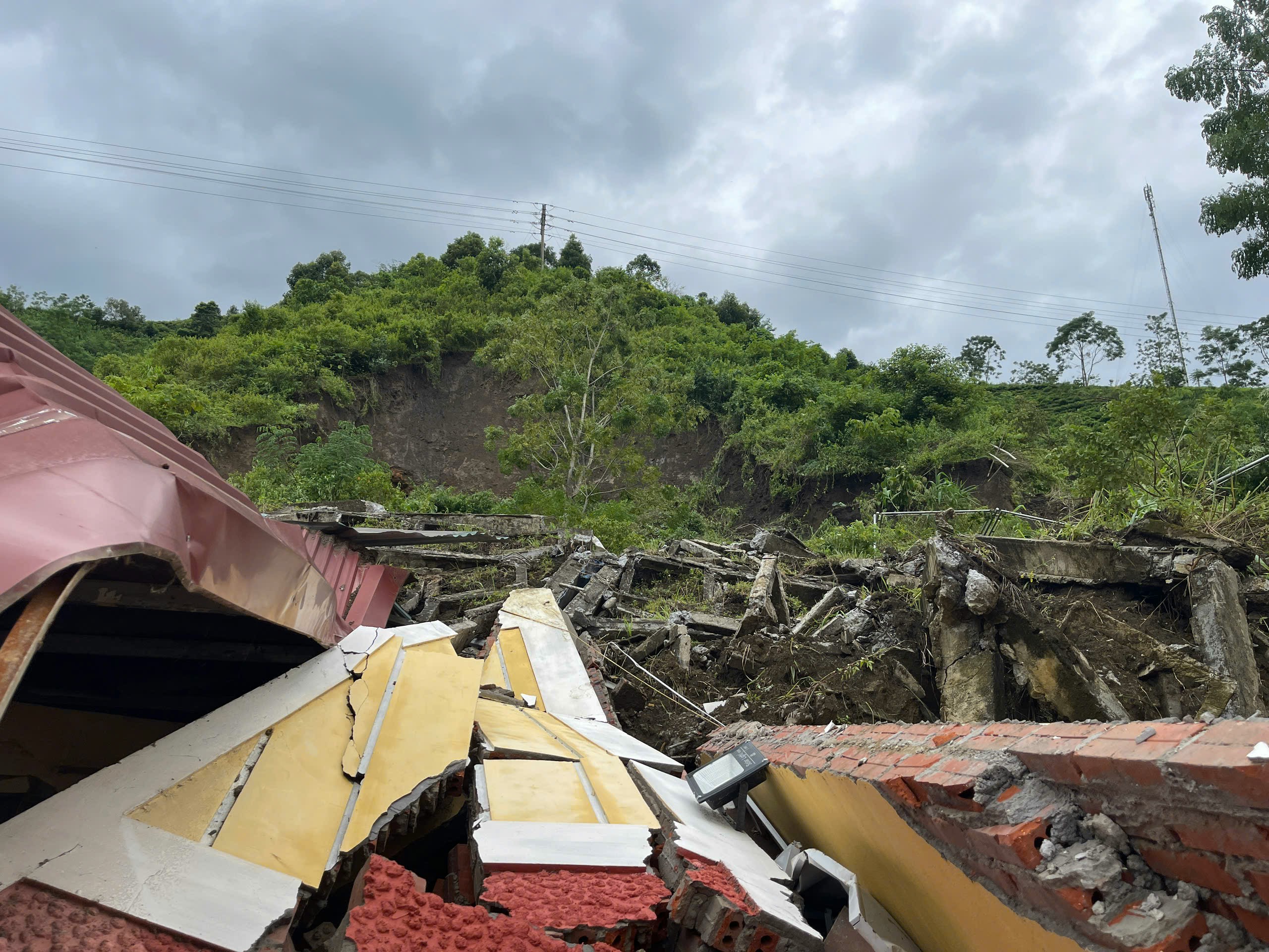 "Thông tin trên là hoàn toàn chính xác, quả đồi phía sau trường đã sạt xuống gây đổ sập dãy nhà bán trú gồm 16 phòng ăn.