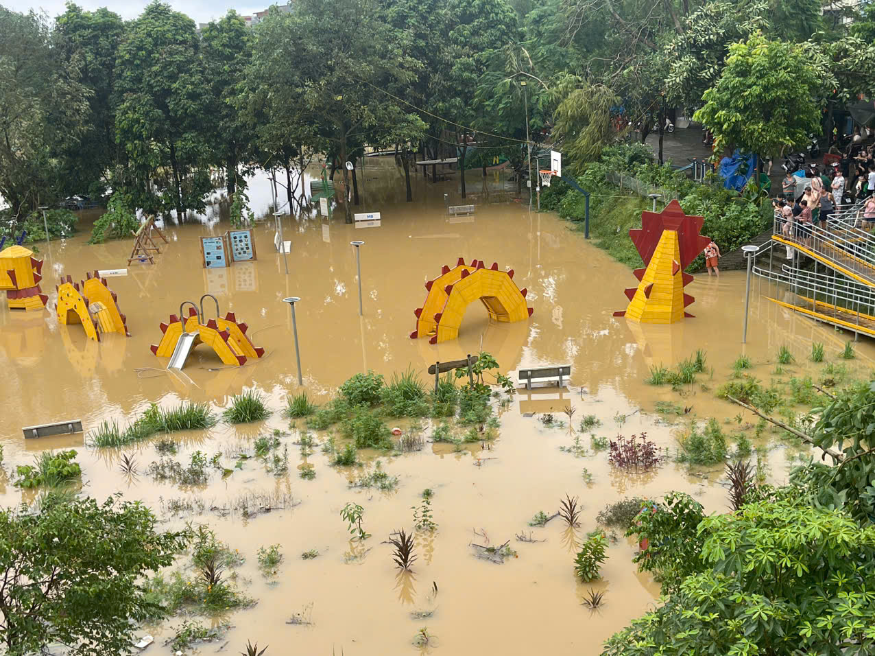 nước mênh mông tại khu vực hầm Đại Lộ Thăng Long