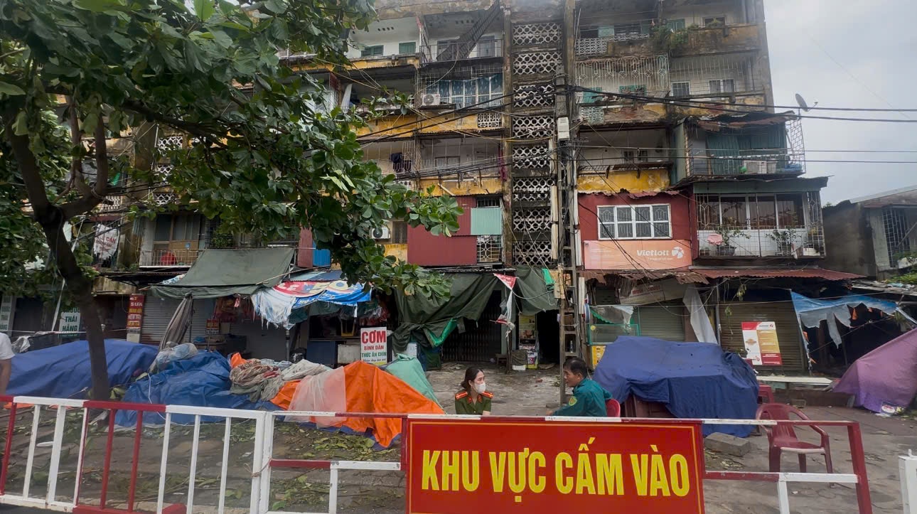 Chính quyền địa phương dựng rào chắn, biển cảnh báo và bố trí lực lượng không cho người dân ra vào tòa nhà để đảm bảo an toàn