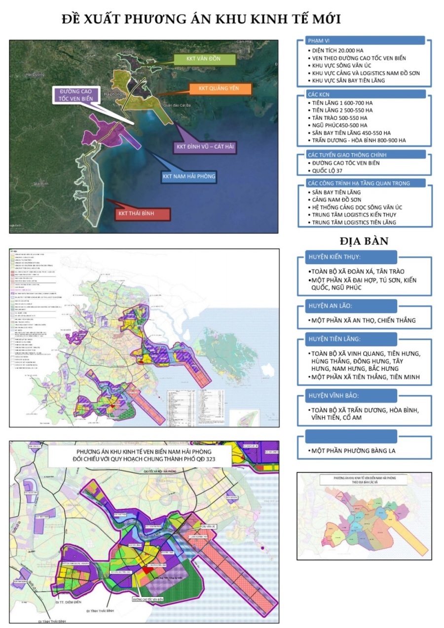 Khu kinh tế (KKT) mới dự kiến sẽ quy hoạch tại các quận, huyện: Kiến Thụy, An Lão, Tiên Lãng, Vĩnh Bảo, Đồ Sơn. Quy mô khu vực dự án là khoảng 20.000 ha, nhằm kết nối với đường cao tốc ven biển, cảng Nam Đồ Sơn và sân bay Tiên Lãng dự kiến sẽ hình thành trong tương lai.