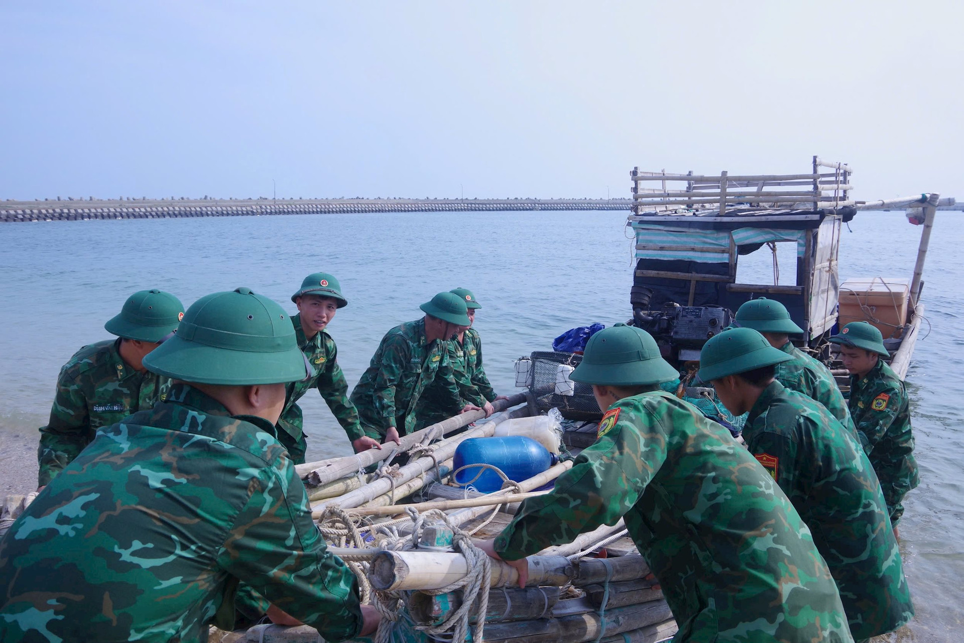 Bộ đội biên phòng huyện Bạch Long Vỹ cùng ngư dân di dời tàu lên bờ tránh bão.