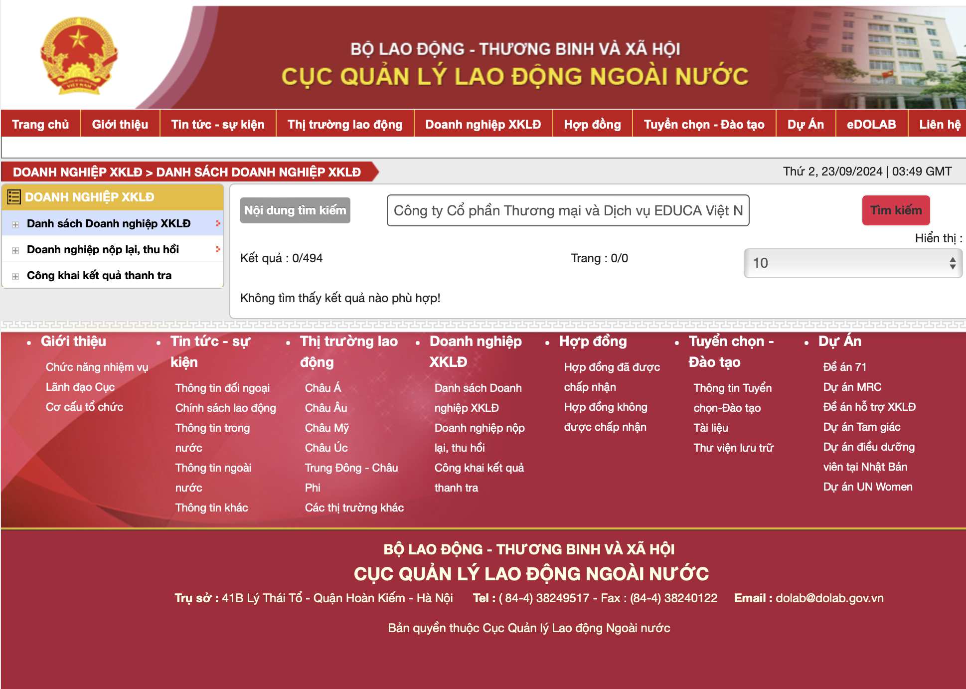 Theo tìm hiểu ban đầu, Công ty Cổ phần Thương mại và Dịch vụ EDUCA Việt Nam không nằm trong danh sách các công ty xuất khẩu lao động và cung ứng nhân lực được Bộ Lao động và Thương binh Xã hội cấp phép.