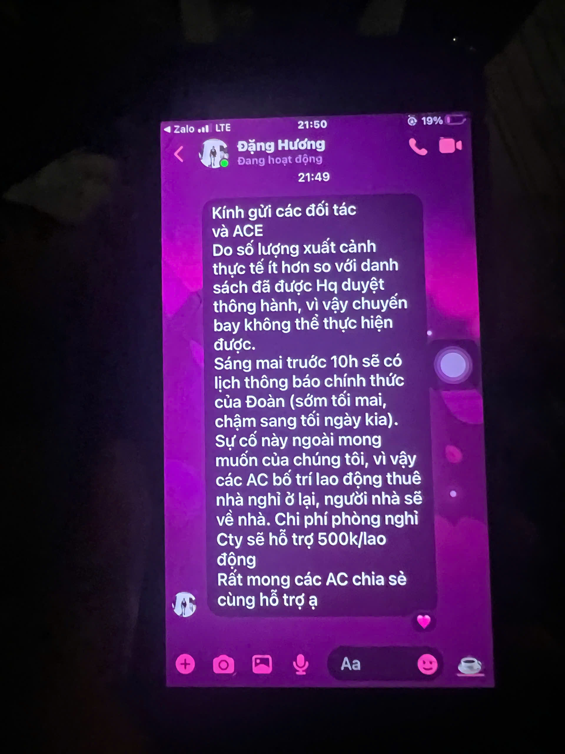 Sự việc này đã khiến hàng trăm người lao động bơ vơ tại sân bay Nội Bài và sân vận động Mỹ Đình. Trong khi đó, theo người lao động phản ánh, phía công ty đã có thông báo cho hơn 200 người lao động theo đơn hàng xuất khẩu sang Hàn Quốc sẽ tập trung và làm thủ tục bay trong tối ngày 22/9.
