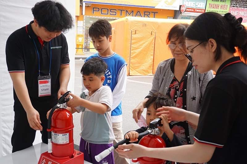 Đặc biệt, tại buổi tuyên truyền lần đầu tiên, người dân được trải nghiệm hệ thống an toàn Phòng cháy chữa cháy của Hàn Quốc tại Việt Nam bao gồm: Trải nghiệm bình chữa cháy sử dụng cảm biến mô phỏng;