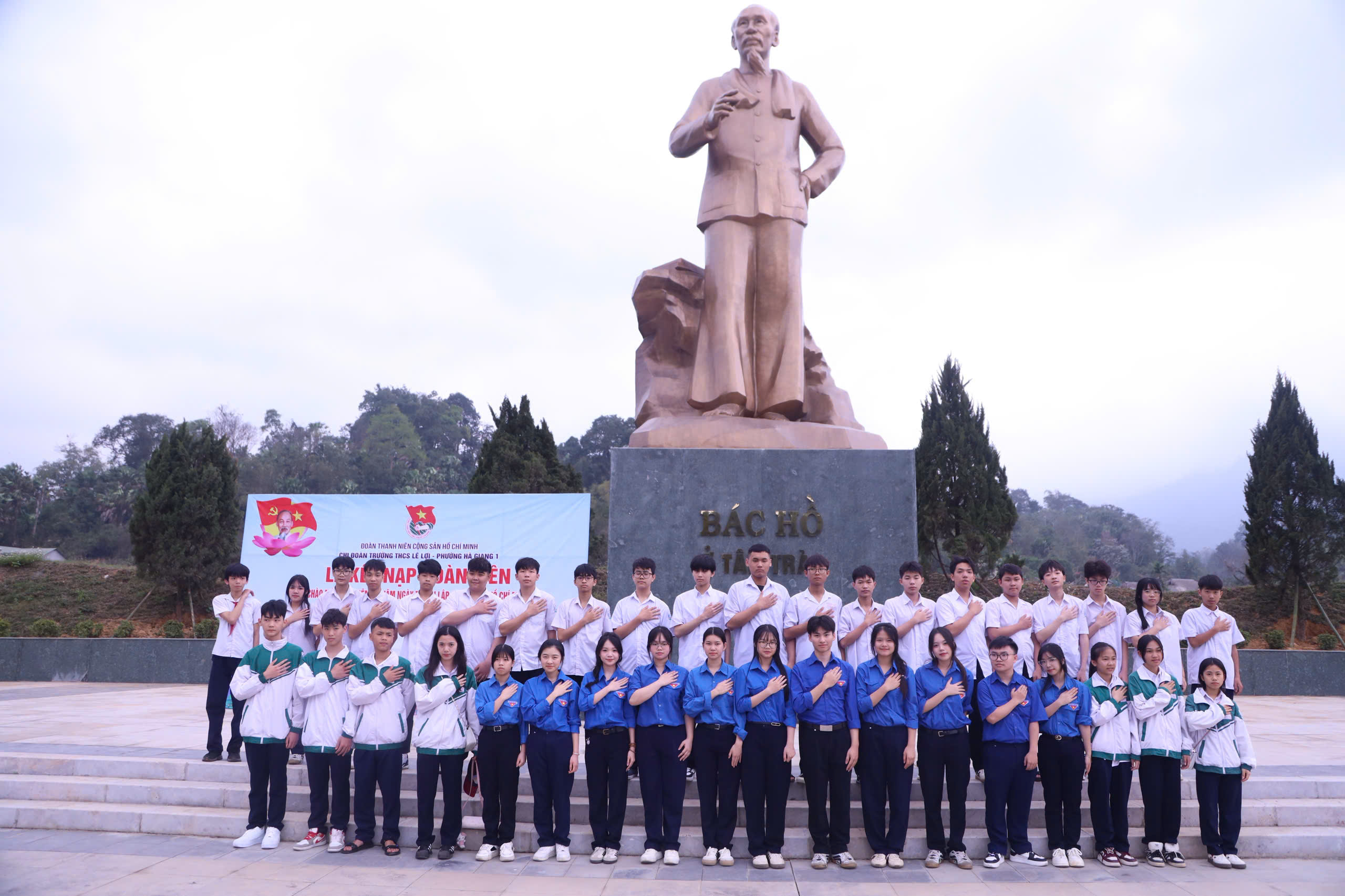 Lễ kết nạp đoàn viên mới cho 68 học sinh tiêu biểu Trường THCS Lê Lợi.
