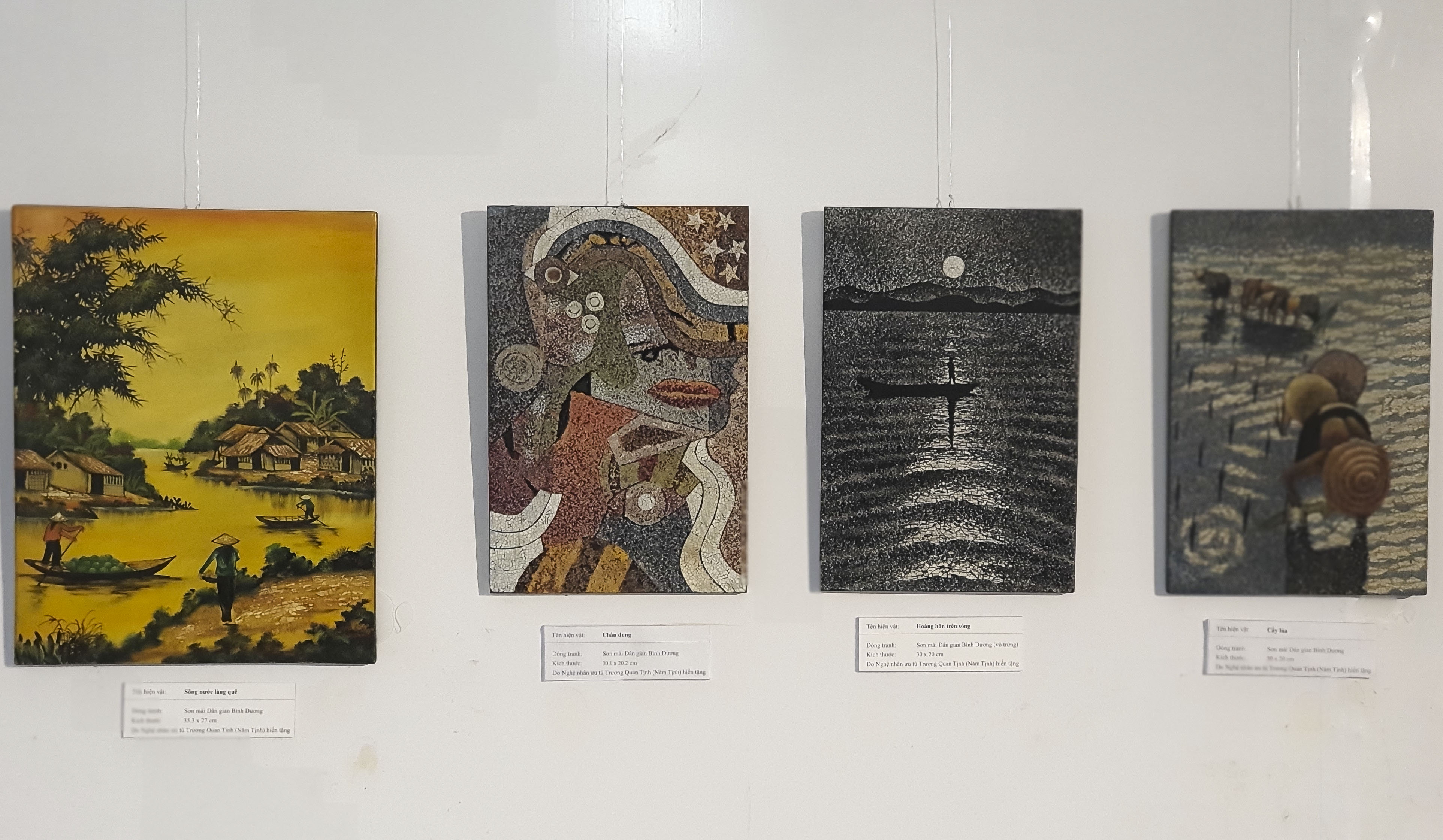 Theo ông Vân, đợt này trưng bày 65 hiện vật tiêu biểu được hiến tặng năm 2023 gồm: 20 tranh kính dân gian miền Nam tiêu biểu của Nhà nghiên cứu Tiến sĩ Nguyễn Thị Thu Hòa; 5 tác phẩm tranh sơn mài và 15 sản phẩm sơn mài dân gian tiêu biểu của NNƯT Trương Quan Tịnh (Năm Tịnh);