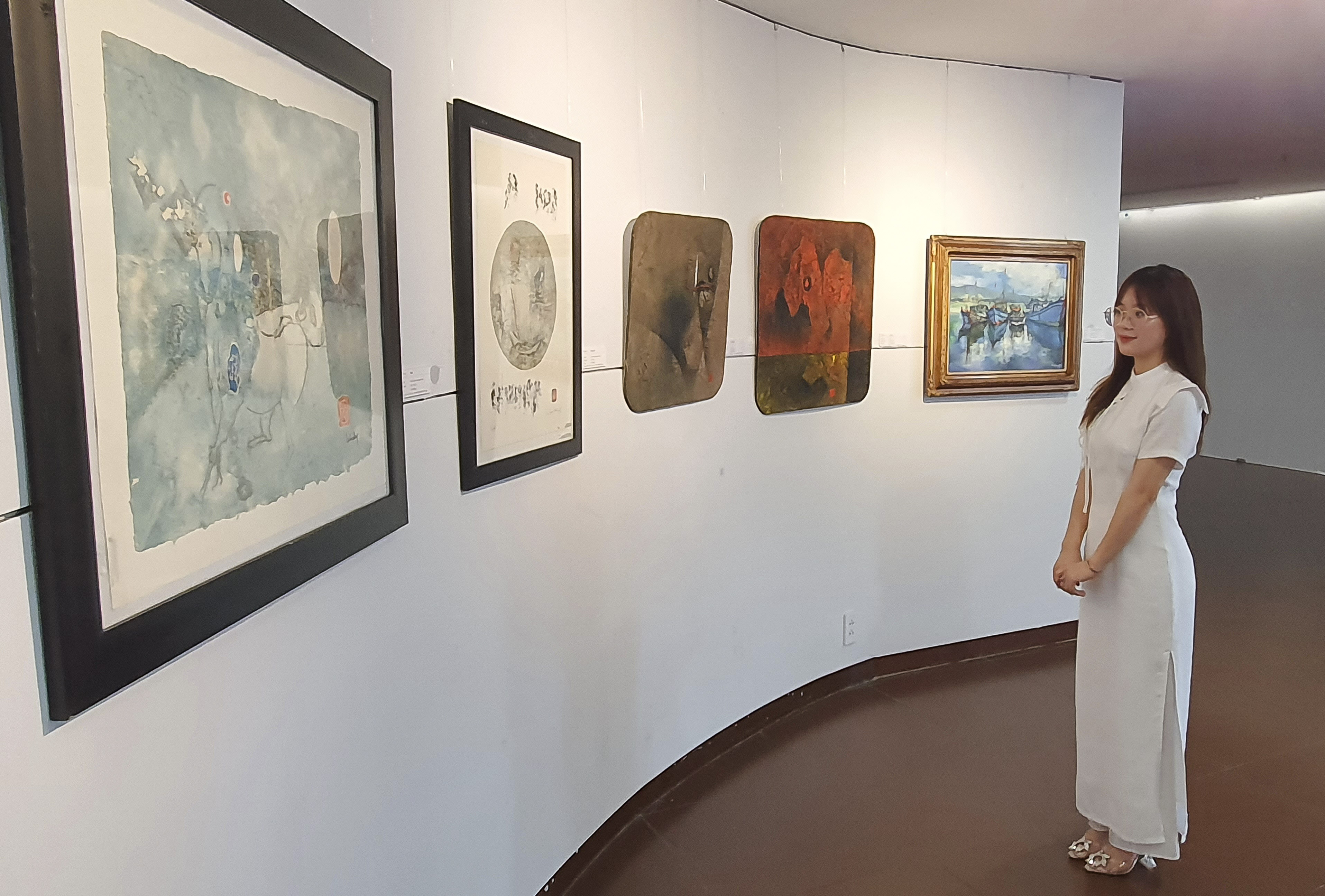 Đợt này Bảo tàng Mỹ thuật Đà Nẵng trưng bày 65 hiện vật tiêu biểu được hiến tặng năm 2023. Ảnh: Hoàng Linh