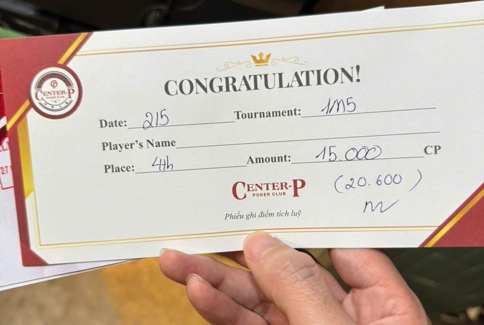 Người chơi sử dụng tiền để mua vé tham gia các giải đấu tập huấn tại Center Point Poker với cơ cấu hàng trăm triệu đồng