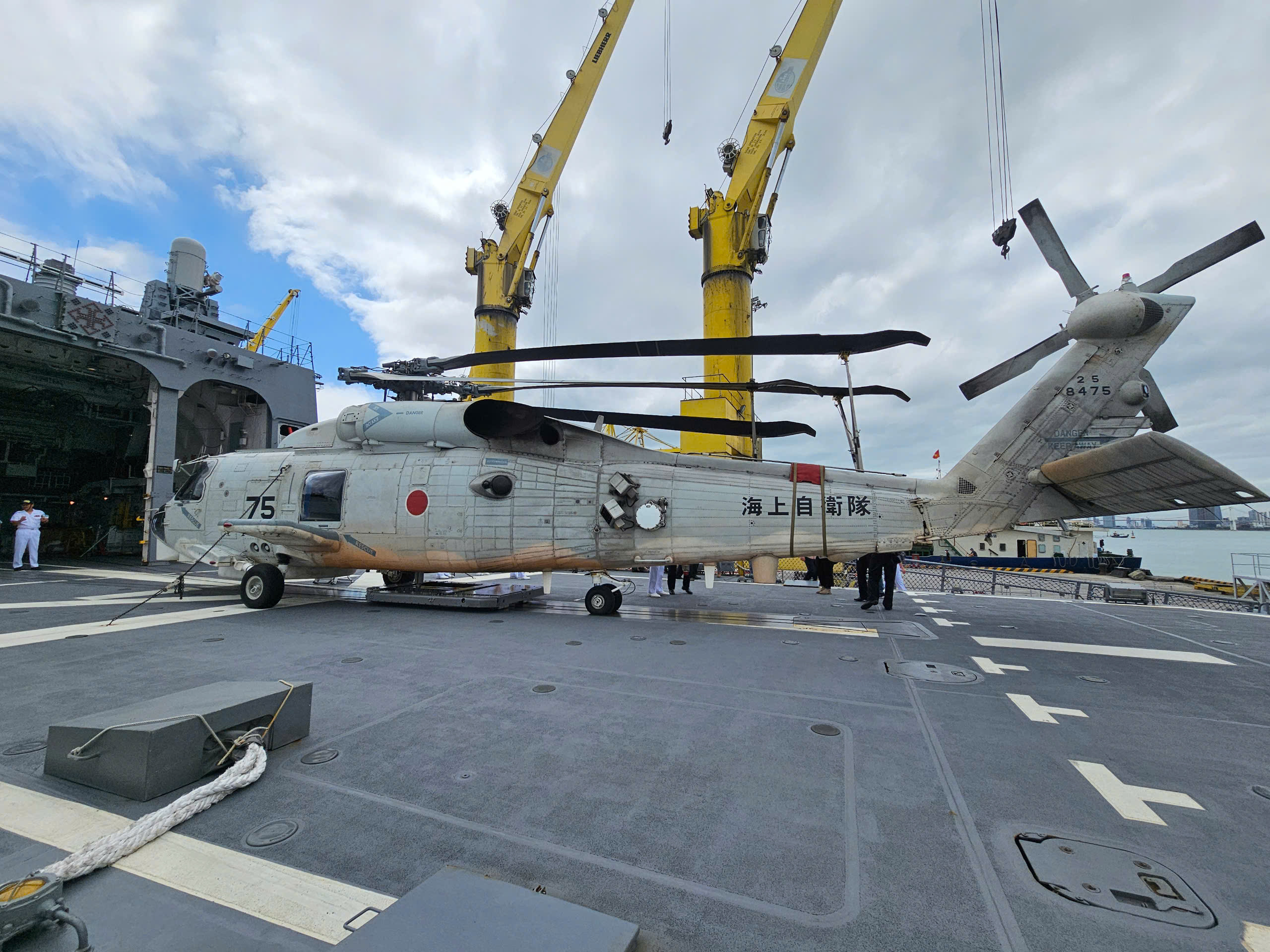 Trực thăng SH-60K của lực lượng tự vệ trên biển Nhật Bản trên boong tàu huấn luyện Suzunami.