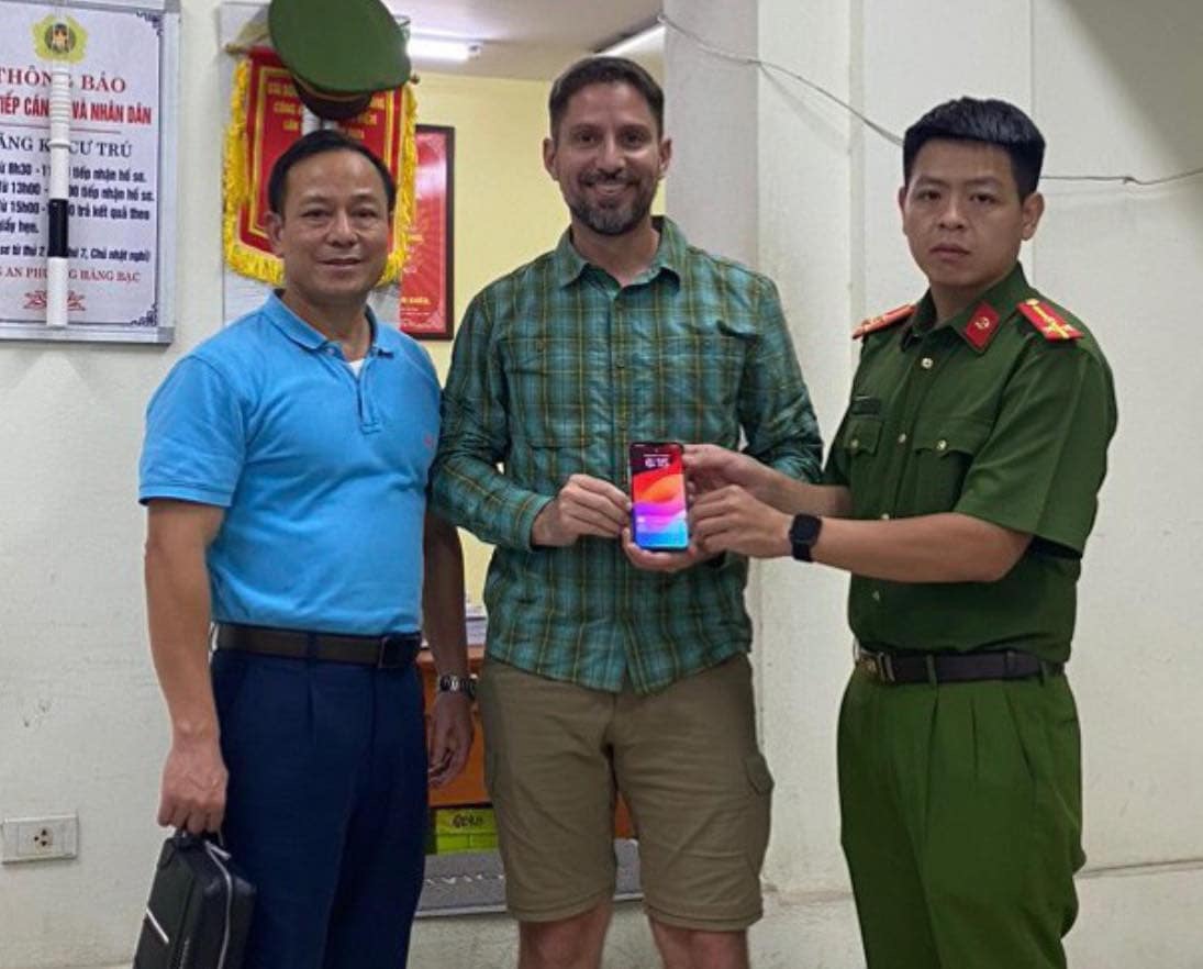 Đến 18h30 cùng ngày (2/10), Công an phường Hàng Bạc đã truy tìm thành công và thu hồi được chiếc điện thoại bị mất, trao trả lại cho anh Eric Transfeldt Atkins ngay tại trụ sở.