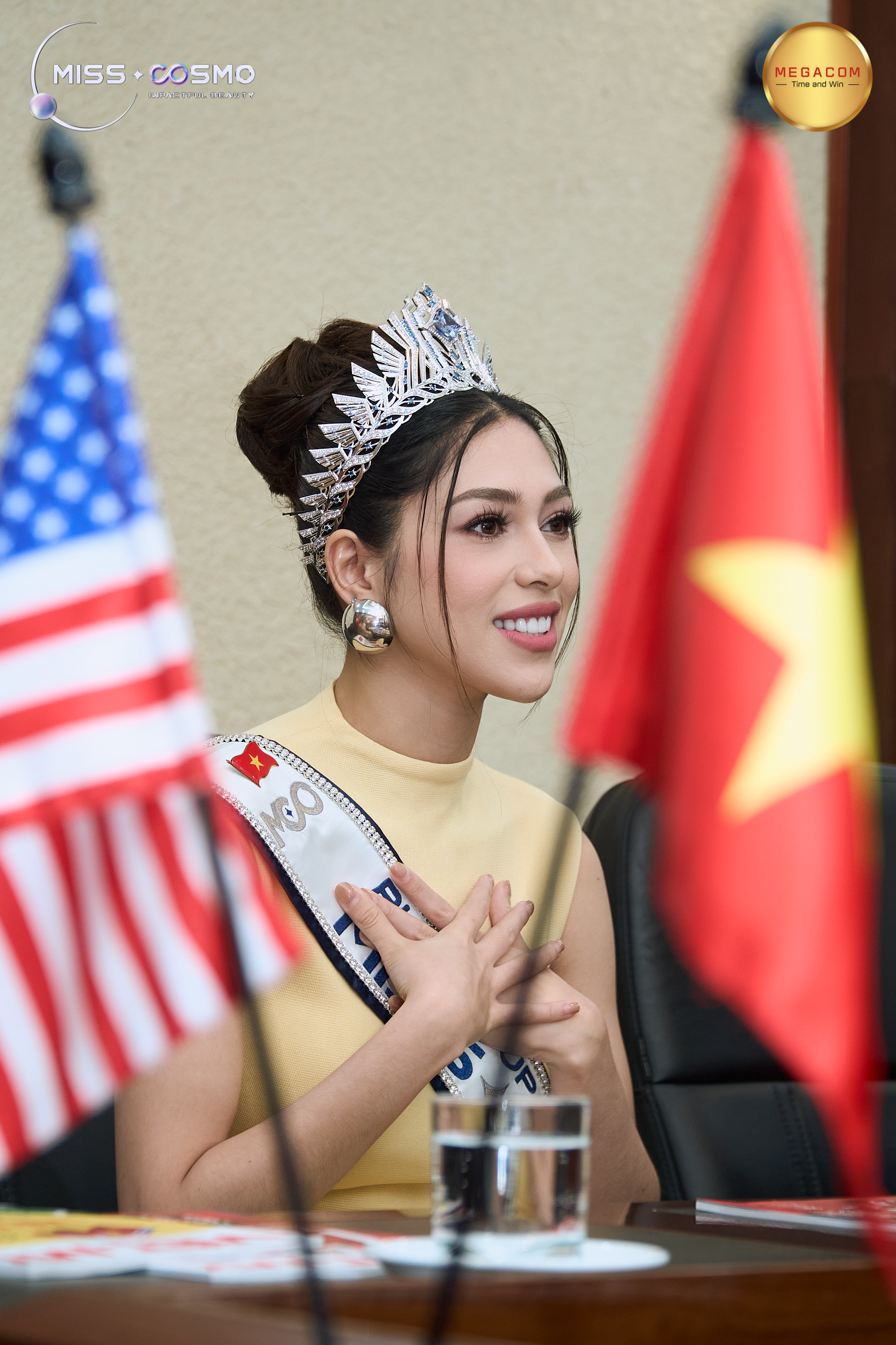 Xuất hiện rạng rỡ nhưng gần gũi, giản dị, Hoa hậu Miss Cosmo 2025 Yolina Linquist nhanh chóng thu hút sự chú ý bởi phong thái tự tin và thông điệp giàu chiều sâu. Chia sẻ tại buổi làm việc, cô bày tỏ niềm hạnh phúc và cảm thấy vô cùng vinh dự khi đăng quang đúng vào năm 2025 – dấu mốc đặc biệt kỷ niệm 30 năm trong quan hệ ngoại giao Việt Nam – Hoa Kỳ.