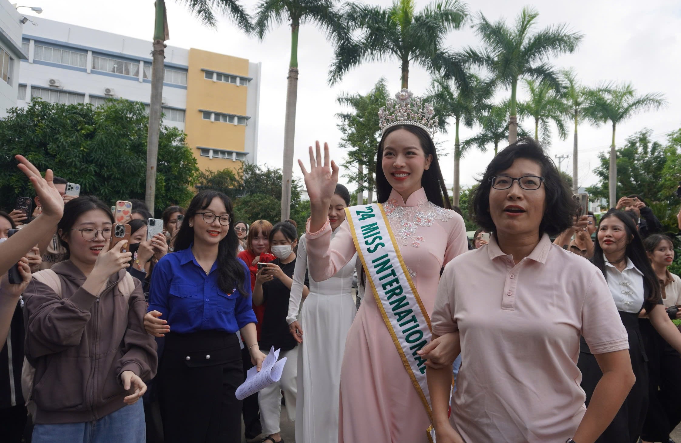Trở về trường sau khi đăng quang Hoa hậu Quốc tế 2024, Huỳnh Thị Thanh Thủy được bạn bè, người hâm mộ...vây quanh.