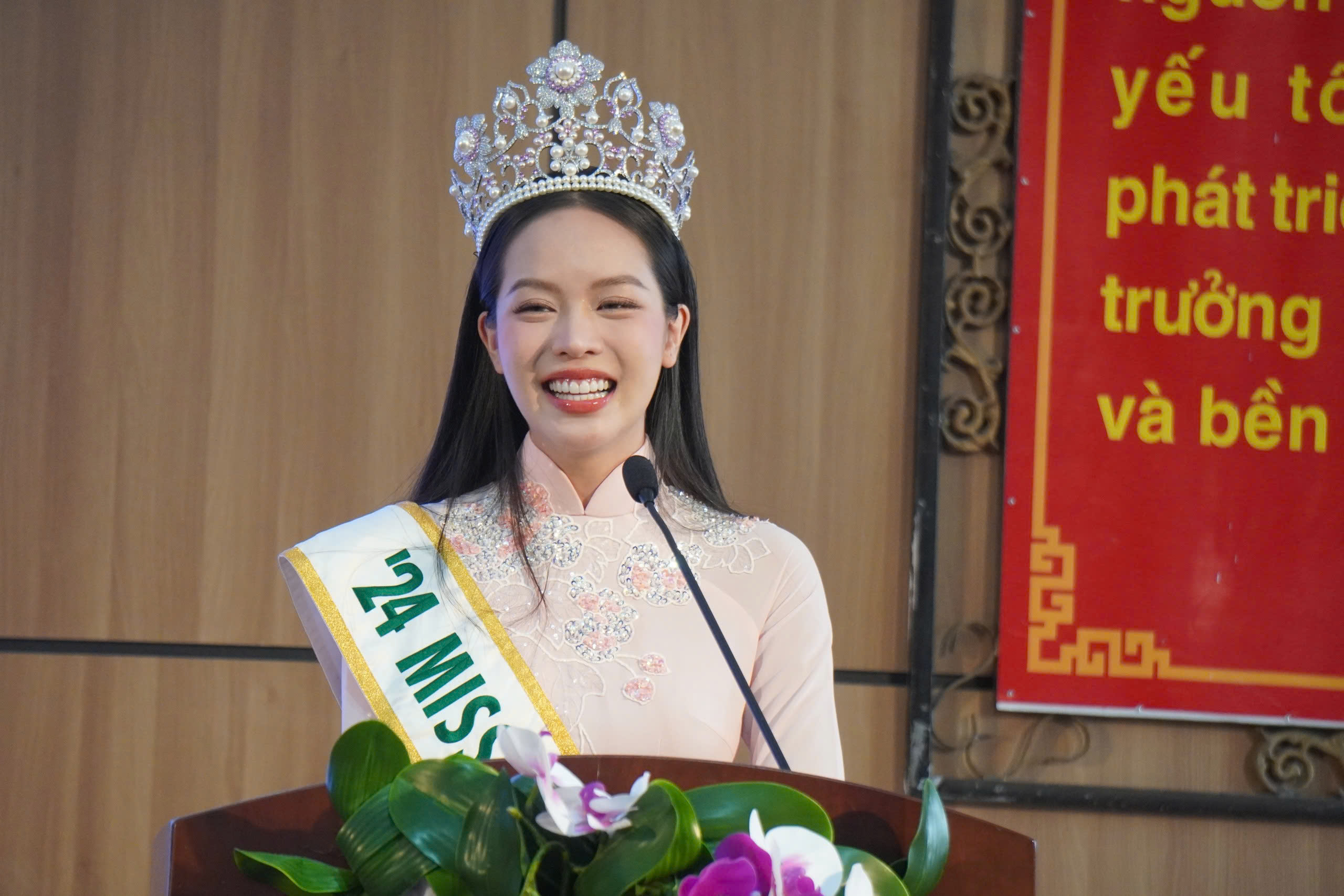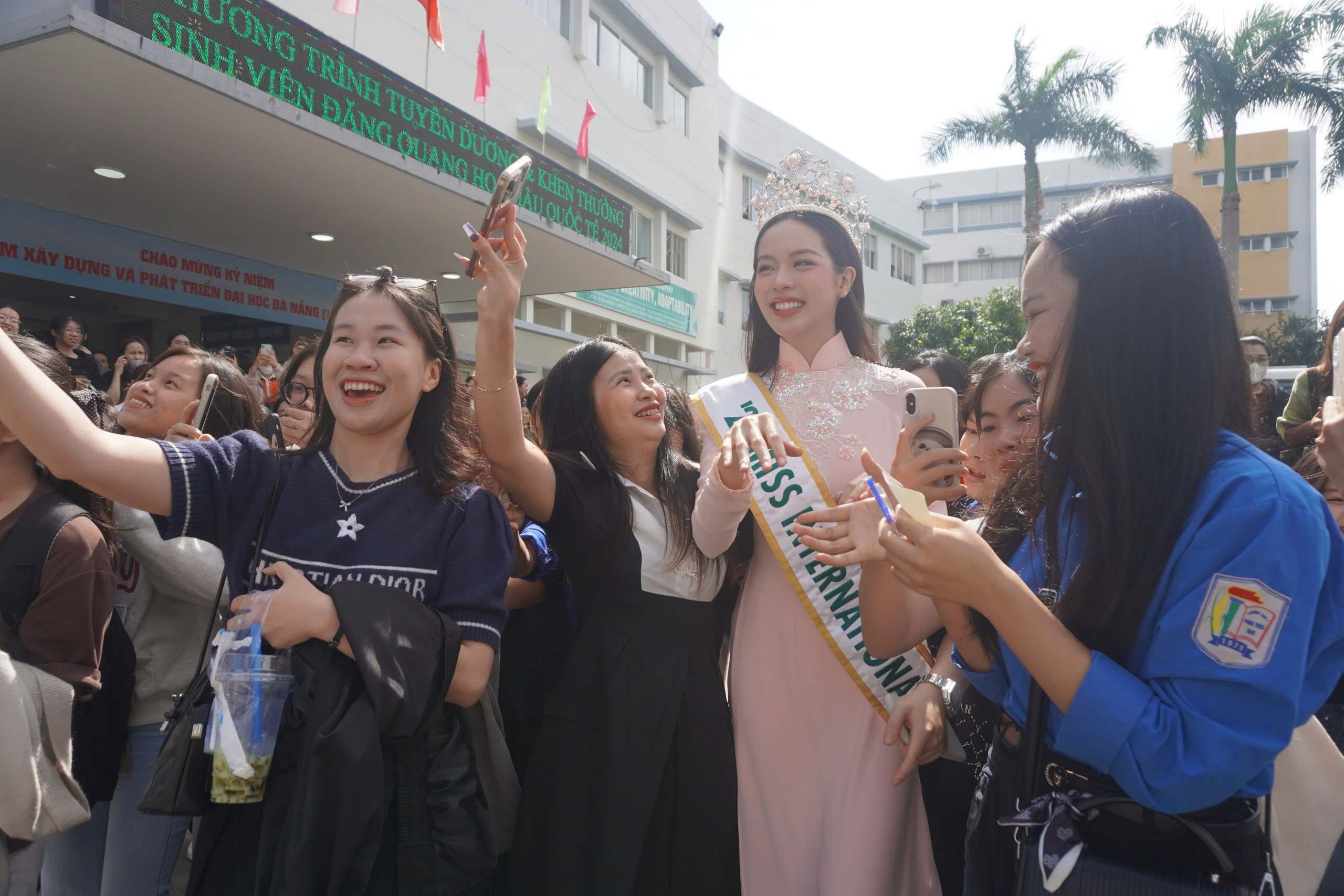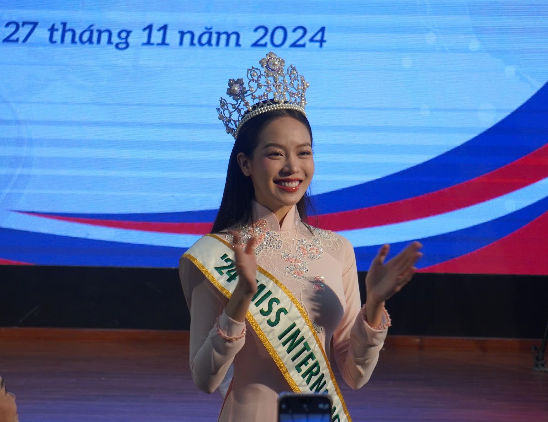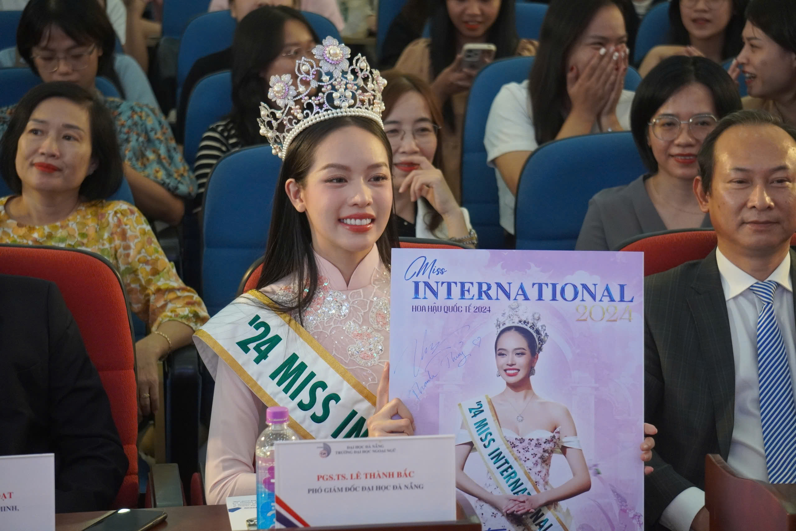 Ngày 27/11, Hoa hậu Quốc tế 2024 Huỳnh Thị Thanh Thủy có buổi giao lưu tại Trường ĐH Ngoại ngữ (ĐH Đà Nẵng) - nơi cô đang theo học.