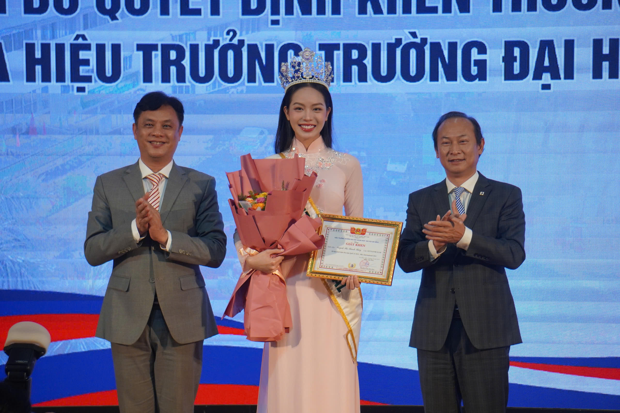 Hoa hậu Thanh Thủy nhận được các quyết định khen thưởng và giấy khen của Giám đốc ĐH Đà Nẵng, Hiệu trưởng Trường ĐH Ngoại ngữ...